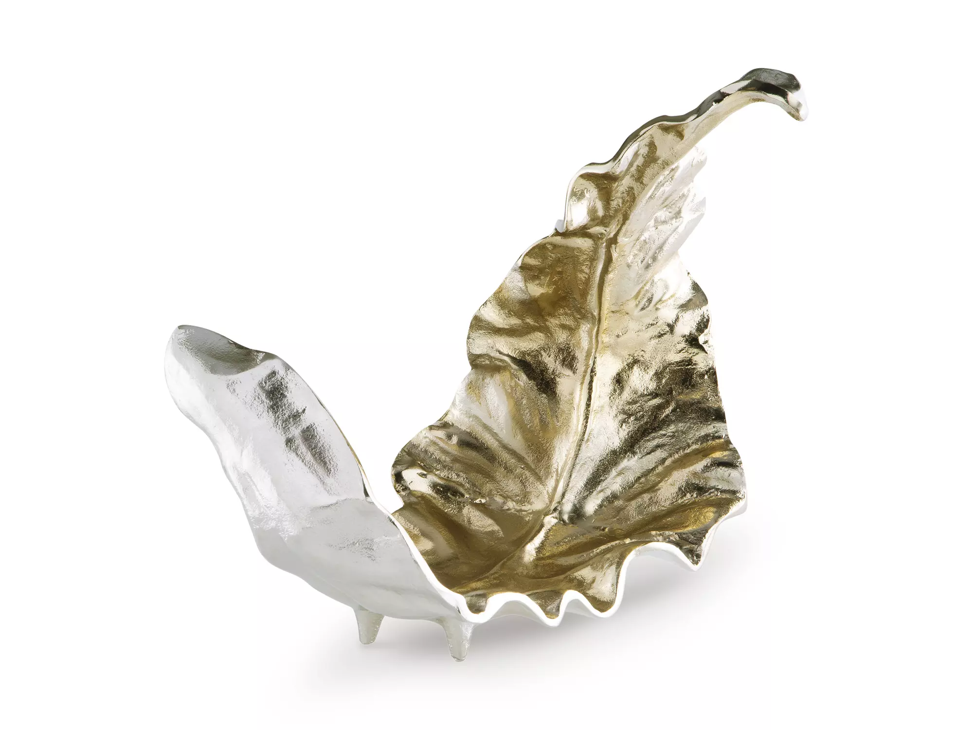 DescriptionThis sculpture takes its cues from nature, forming a delicately curved leaf. Dressed in goldtone and silvertone finishes, it brings an organically beautiful feel to contemporary design. Use it to add refinement to a bookshelf or to complete a table’s decor display.
