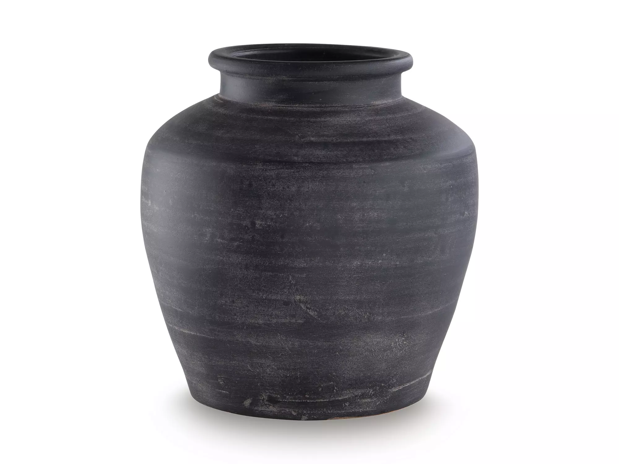 DescriptionCelebrate the artisanal character of ceramics with this vase. Its distressed black finish has a time-worn, weathered appeal, offering the look of the past with a modern feel. The vase's neutral tone makes it a go-to for all seasons, allowing you to stage it solo or dress it up with faux florals and greenery.