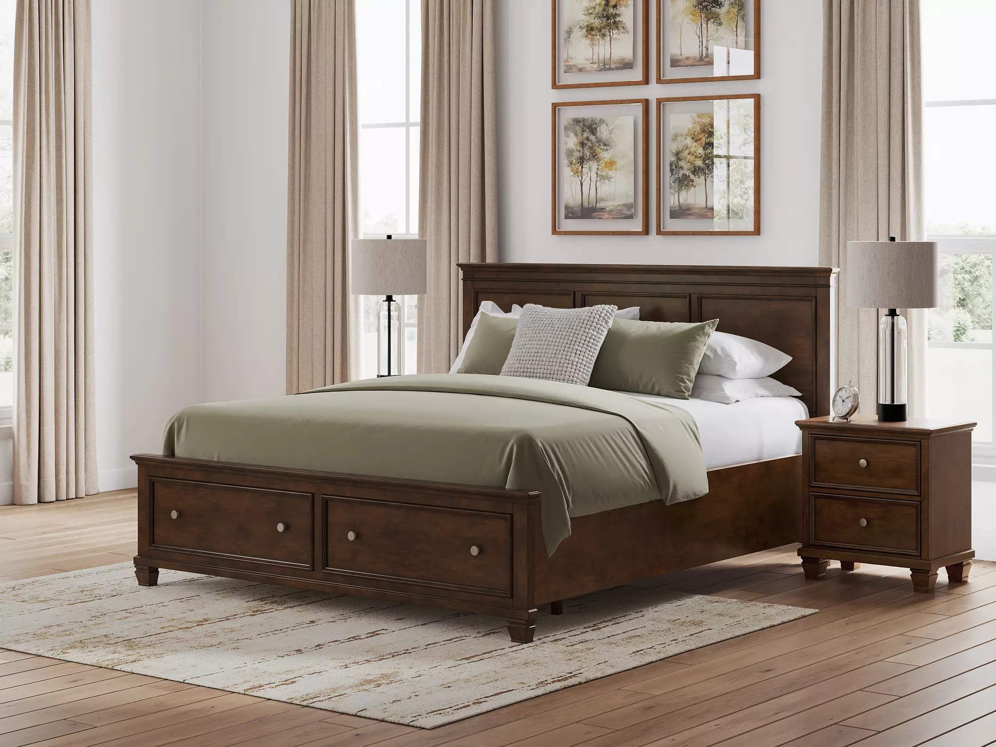 Rail to floor: 5.75 in | Rail width: 73 in | Assembled cal king panel storage bed: Width:83.13 in Depth:89.75 in Height:52.13 in