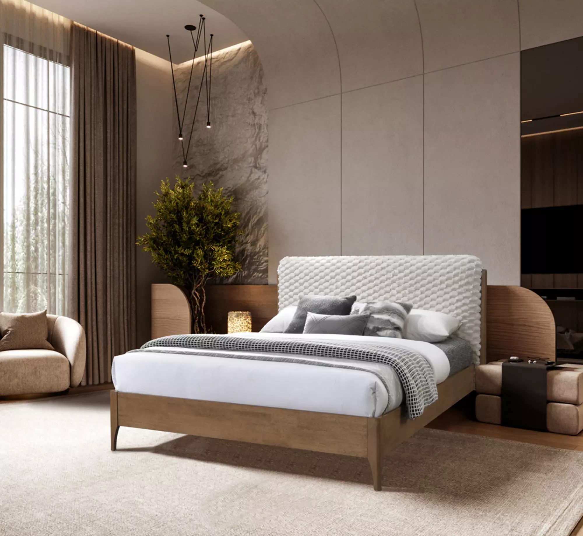 beige double bed by exact