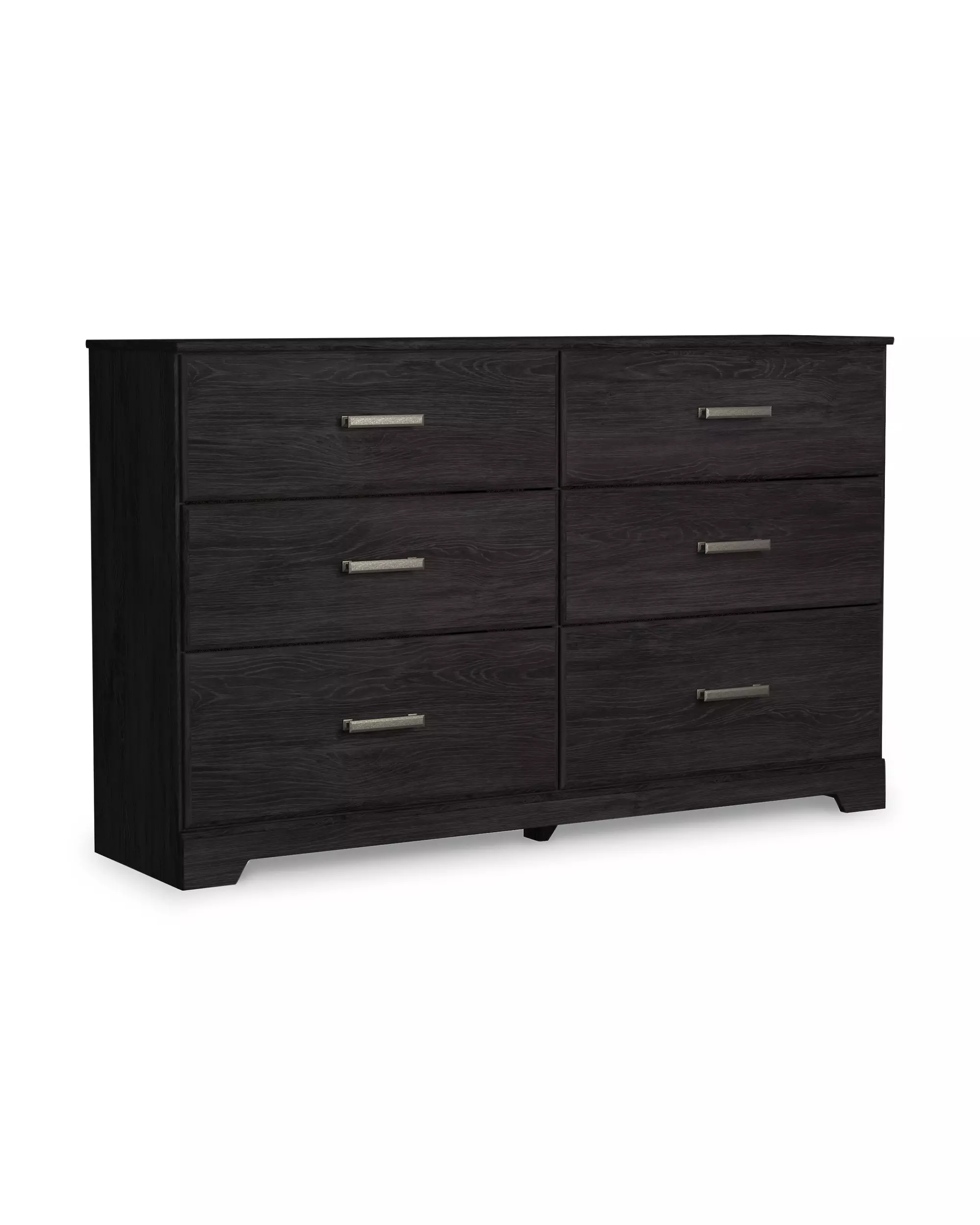 DescriptionWith its clean-lined look and modern attitude, this dresser is a fresh style awakening. A warm charcoal hue over replicated oak grain easily complements other furniture finishes. Smooth drawer fronts with antiqued pewter-tone handles complete the aesthetic.