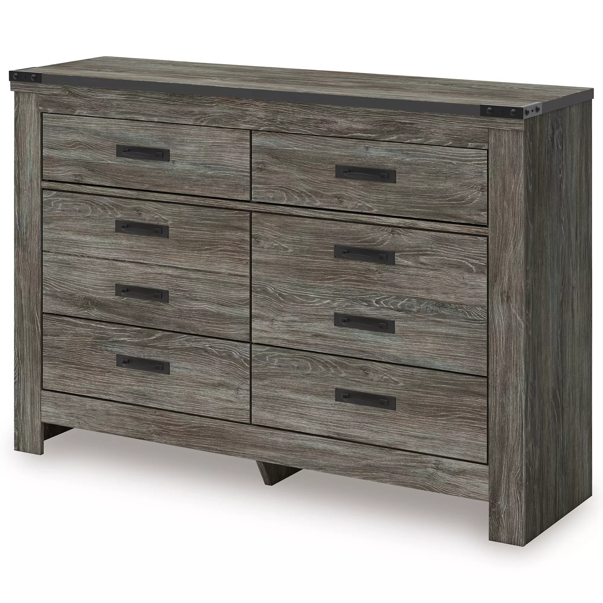 DescriptionCool, casual style is for all ages. With this dresser, they get the function they need plus the refined design you love. Approachably neutral in a rustic warm gray, it’s adaptable enough to pair with an assortment of existing colors and room decor. Faux metal detailing on the corners lends an industrial edge. Smooth-gliding drawers offer storage for clothes, toys and everything in between.