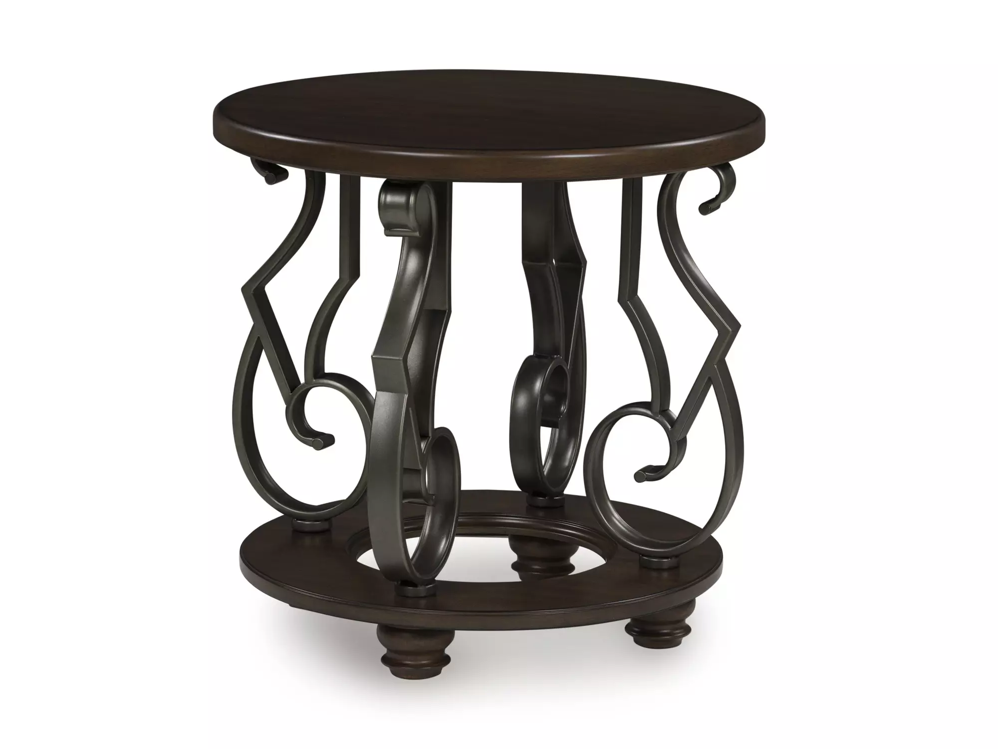 DescriptionThis end table is nothing short of stunning. A rich, warm brown finish exudes opulent elegance, while ornate metal legs add a touch of timeless sophistication. It's perfect for displaying your delicious decor in grand style.