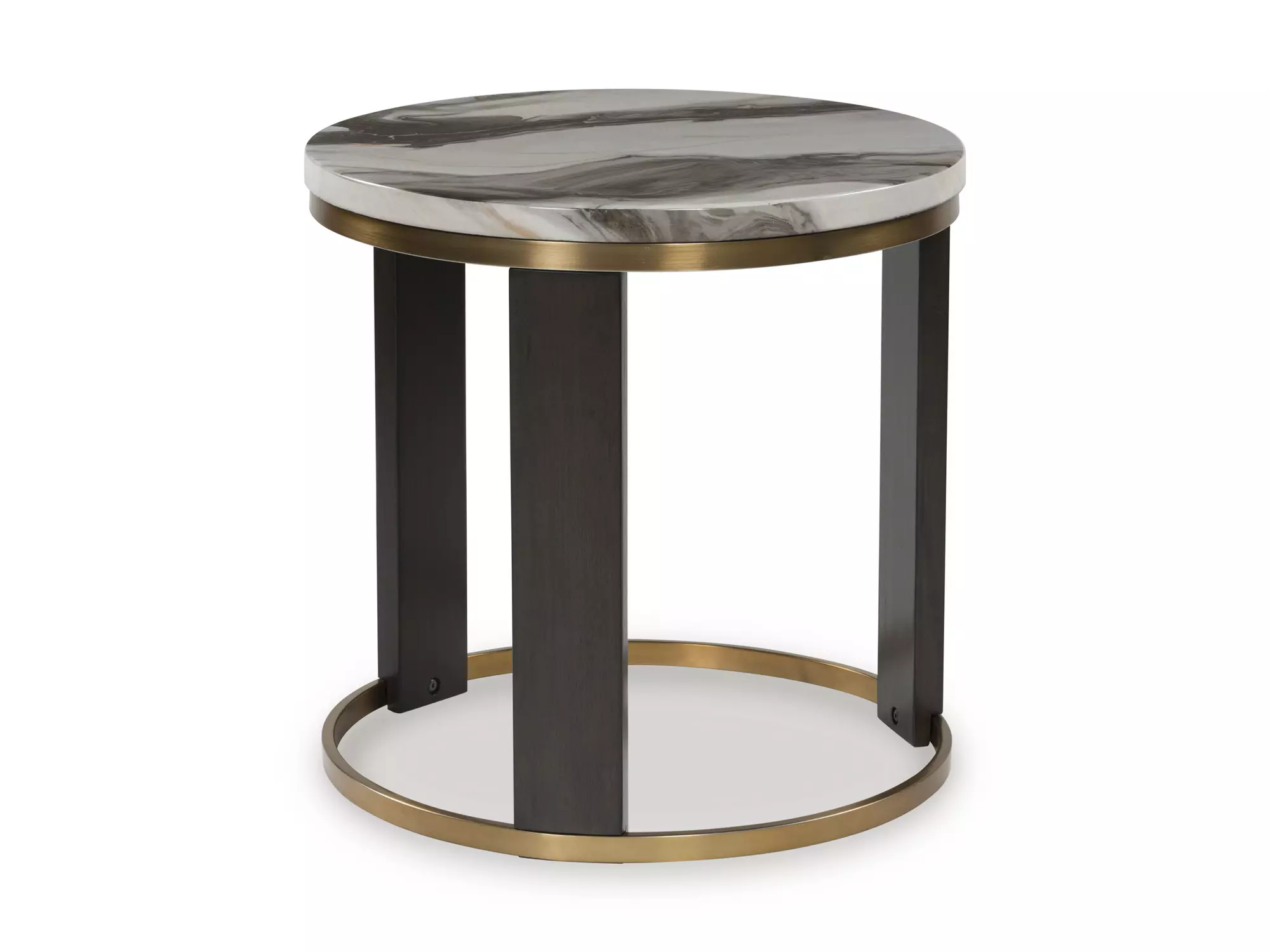DescriptionUltra-contemporary design, everyday convenience. This end table completes your confidently curated living room with its trend-forward pairing of a marble-patterned top and an eye-catching brass-tone frame. Dark wood grain on the legs provides a beautiful contrast. It's well-suited for supporting a sofa-side lamp, holding drinks or displaying decor in sophisticated style.