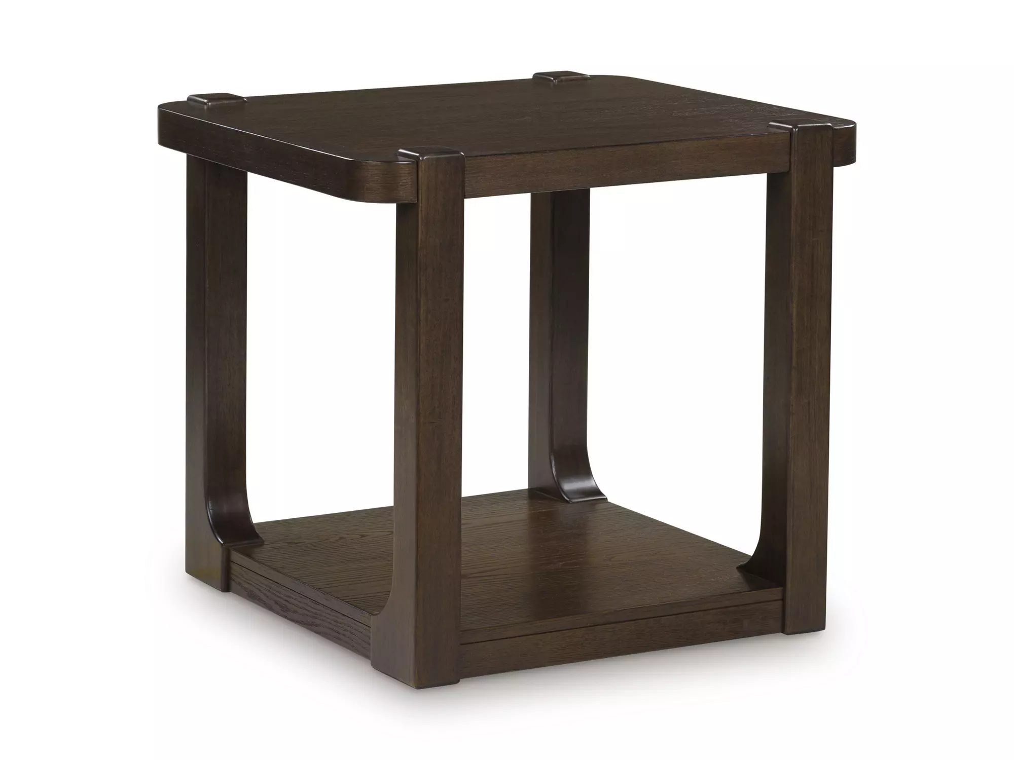 DescriptionIf casual contemporary style is your thing, then you'll love this end table. Its thick tabletop, softly rounded corners and dark wood-tone finish lend a soothing sensibility. Want to add a personal touch? A lower shelf provides space to display decor that reflects your unique eye for design. Sleek and smart, this piece is a fresh take on cool for the modern home.