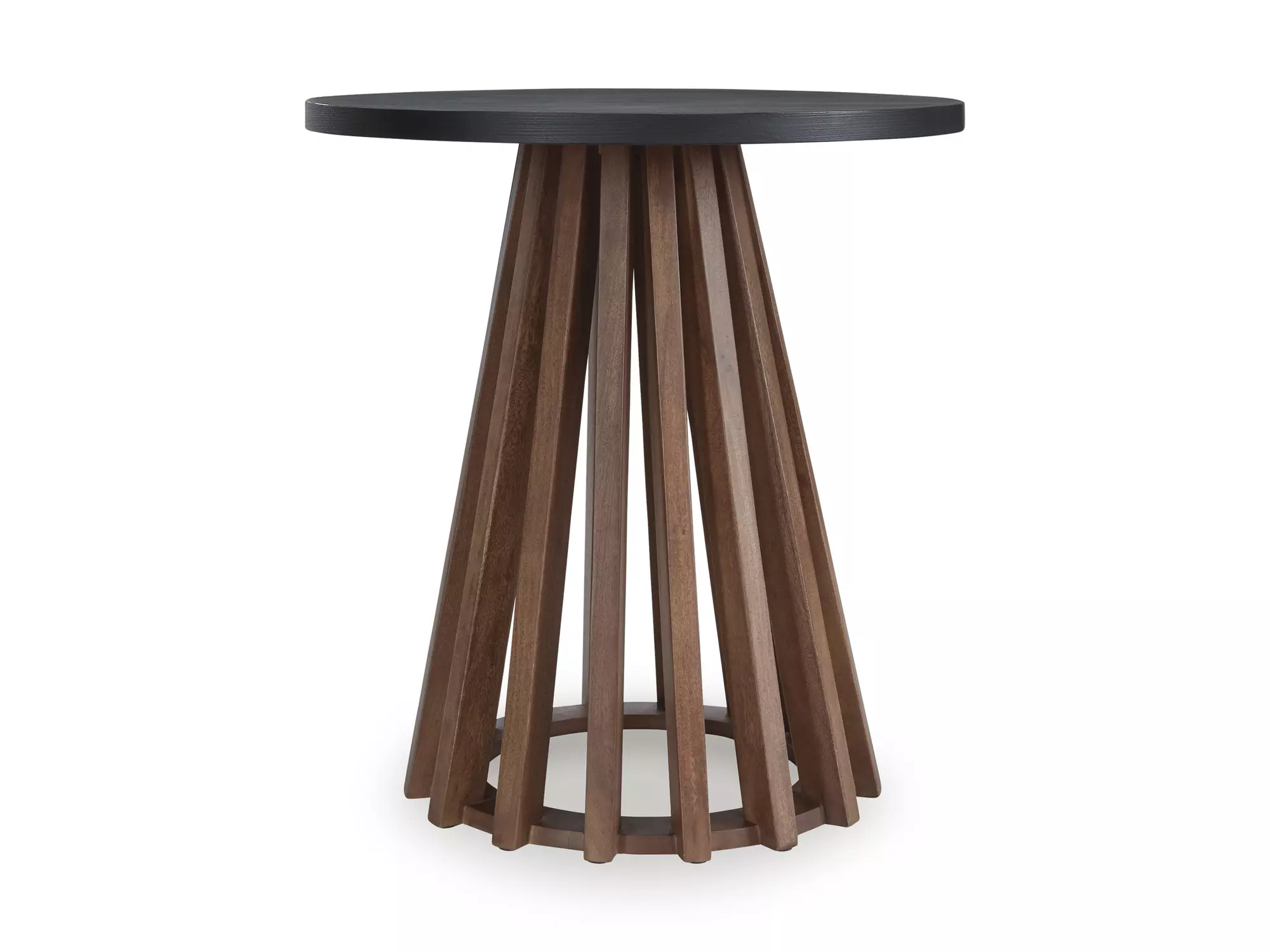DescriptionDouble down on casual chic with the two-tone look of this end table. With its warm brown and matte black finishes, it reflects your eye for modern design. The trend-right slatted styling on the base brings added charm.