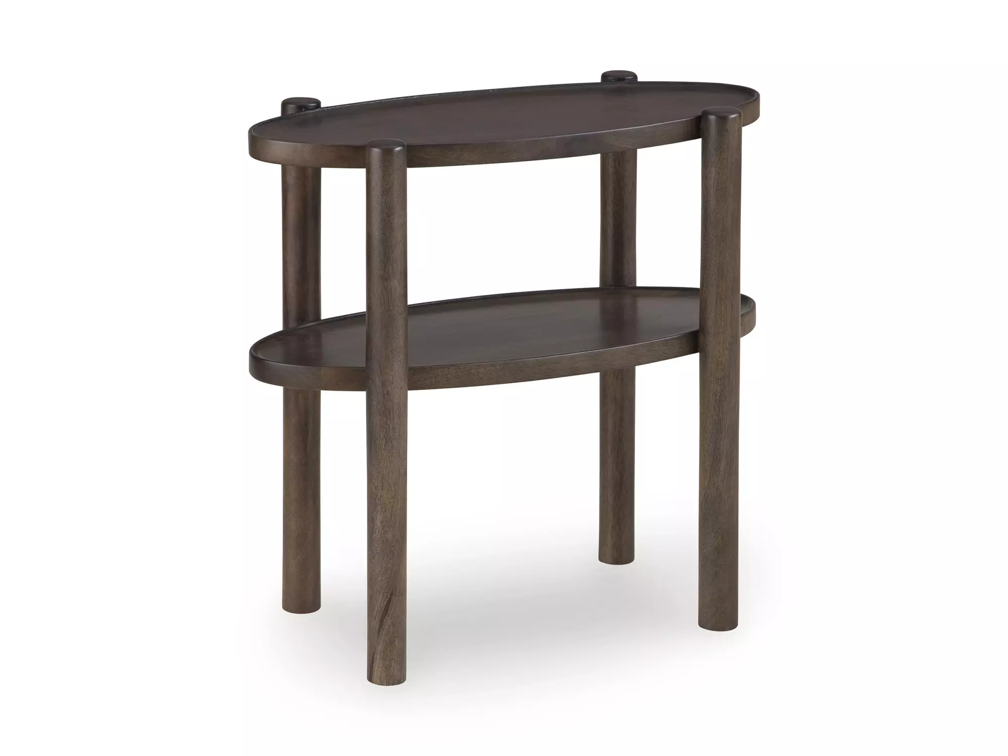 DescriptionInstantly upgrade any corner with this smart accent table. It's made from solid mango wood in a sophisticated gray-brown finish, with rounded post legs that add a soft feel to a variety of decors. Practical raised edges on both tiers keep essentials securely in place.