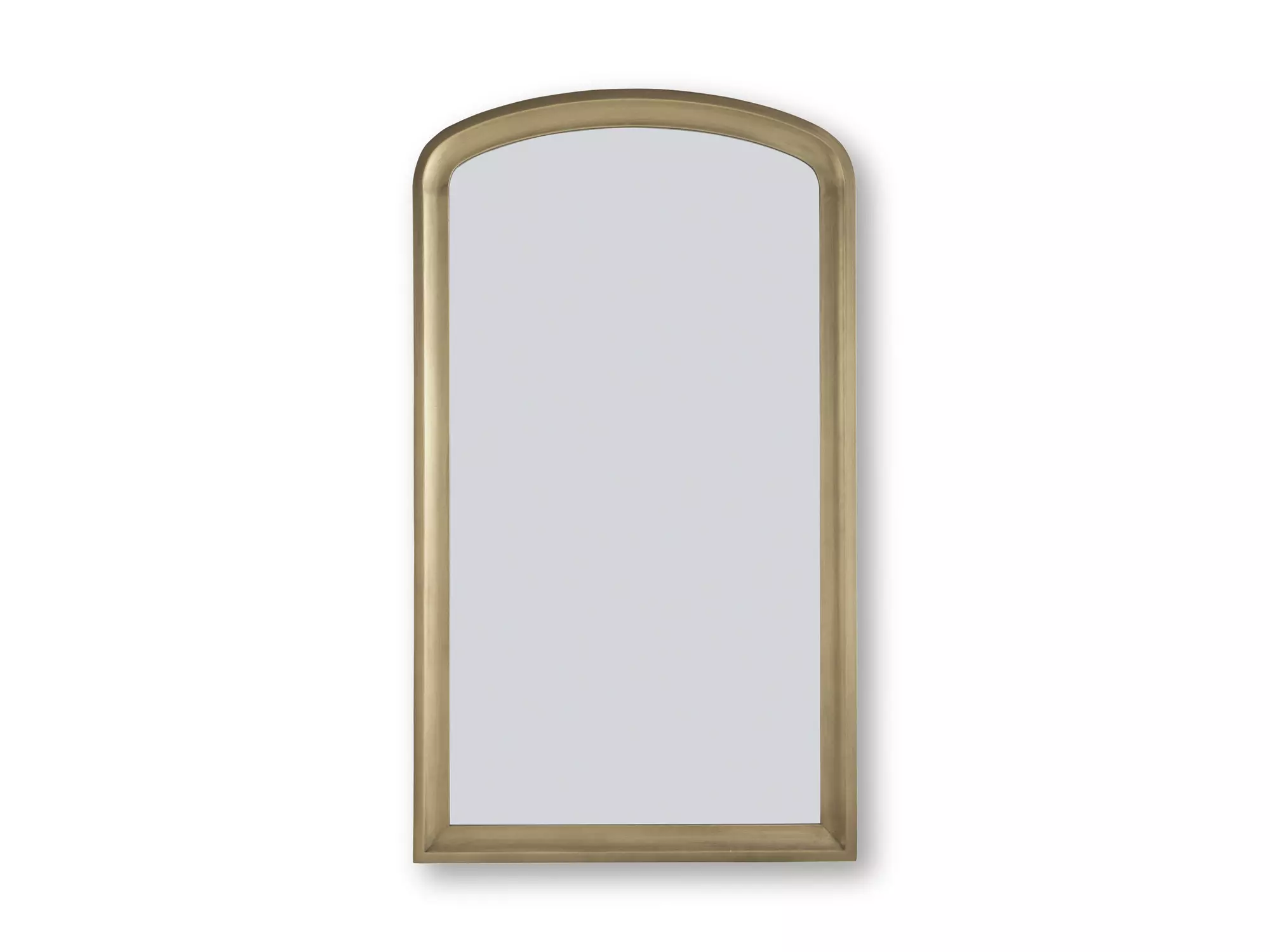 DescriptionWith a gracefully arching top dressed in a goldtone finish, this floor mirror embodies contemporary elegance. Its substantial scale wows, ushering in light and depth with a broad reflective surface. Be it in the entryway, living room or bedroom, it’s striking from every angle.