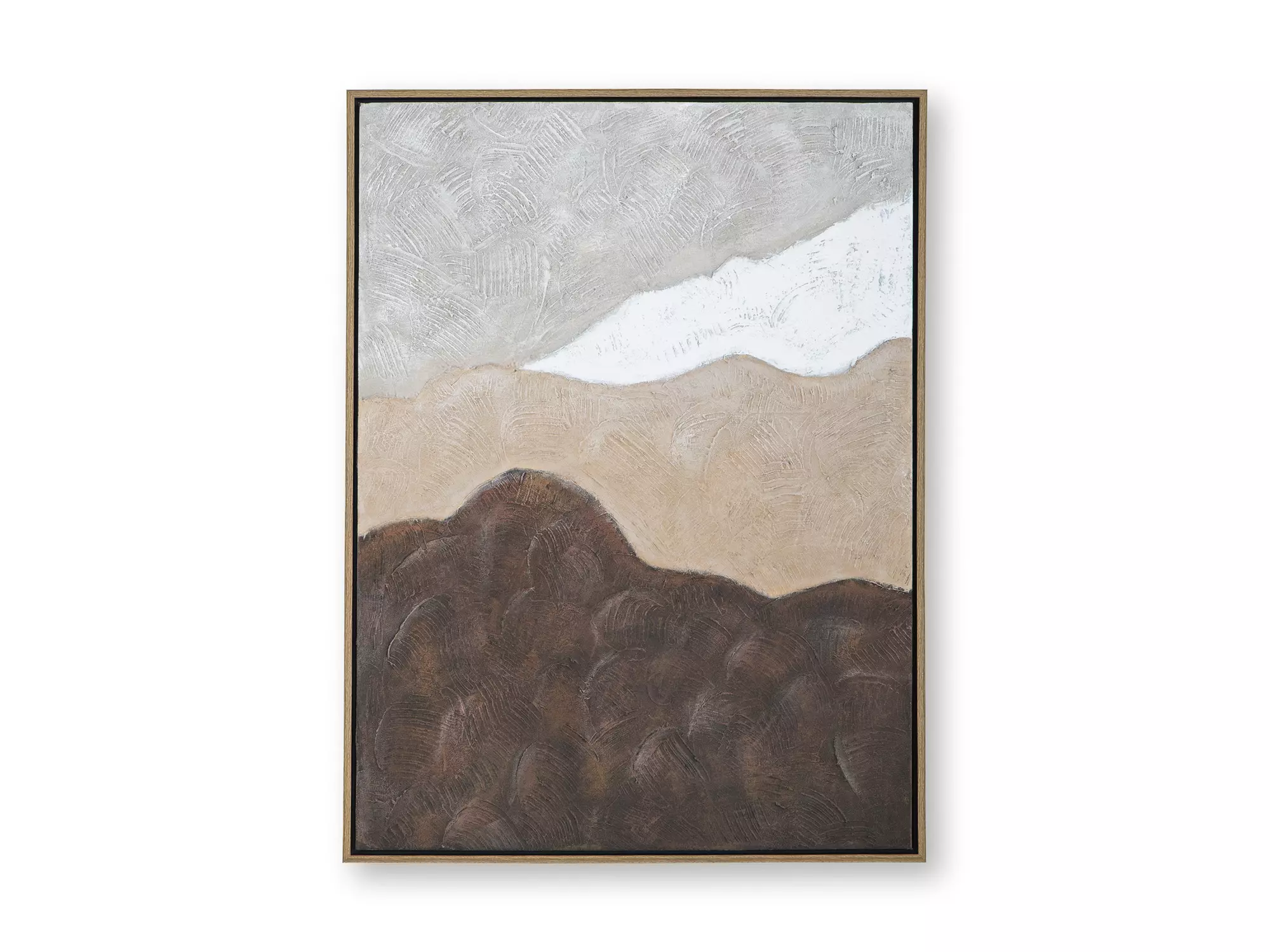 DescriptionYour search for the perfect statement piece ends with this contemporary wall art. With the feel of an abstract landscape, the hand painted canvas showcases a harmonious blend of hues to create depth and movement. Thoughtfully designed with a light brown frame and four-way hanging flexibility, this versatile artwork seamlessly completes your carefully curated space.