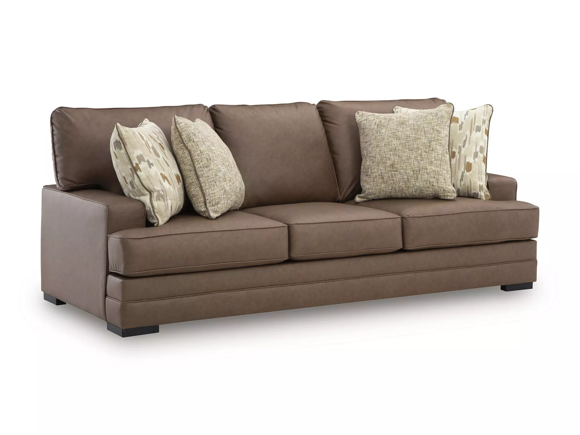 DescriptionSimple and streamlined, this couch delivers a cozy yet contemporary vibe you’ll love as much as we do. Its extra-roomy size and supple caramel faux leather invite you—and your besties—to have a seat. This piece’s understated elegance and enduring comfort are perfect for entertaining or a relaxing night.