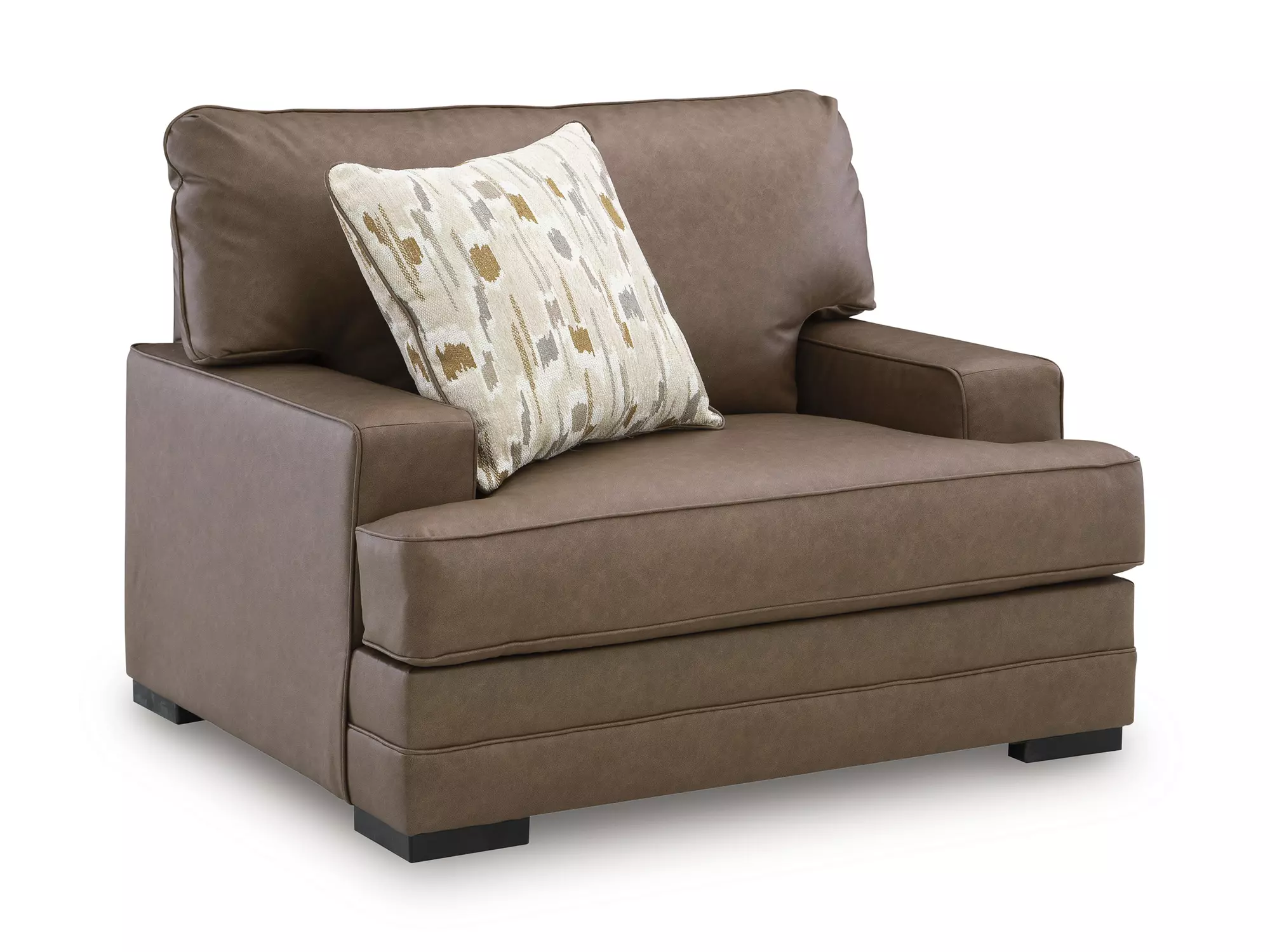 DescriptionSimple and streamlined, this oversized chair delivers a cozy yet contemporary vibe you’ll love as much as we do. Its supple faux leather, in a trend-right caramel tone, invites you—and your bestie—to have a seat. This piece’s understated elegance and enduring comfort are perfect for entertaining or a relaxing night.