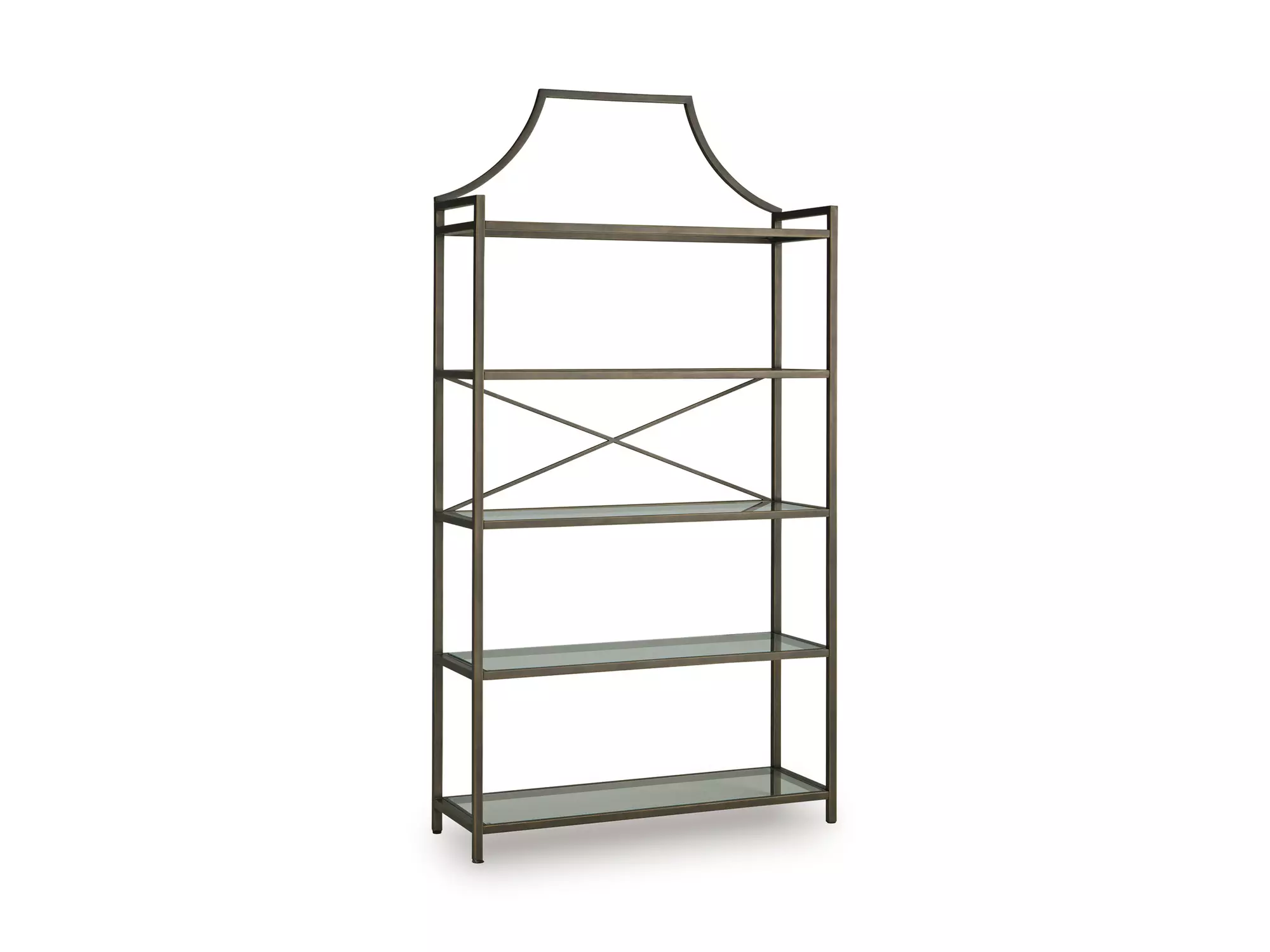 Product DetailsShelves made with clear glass | Metal frame | Frame with antiqued bronze-tone finish | 5 fixed shelves | Assembly required