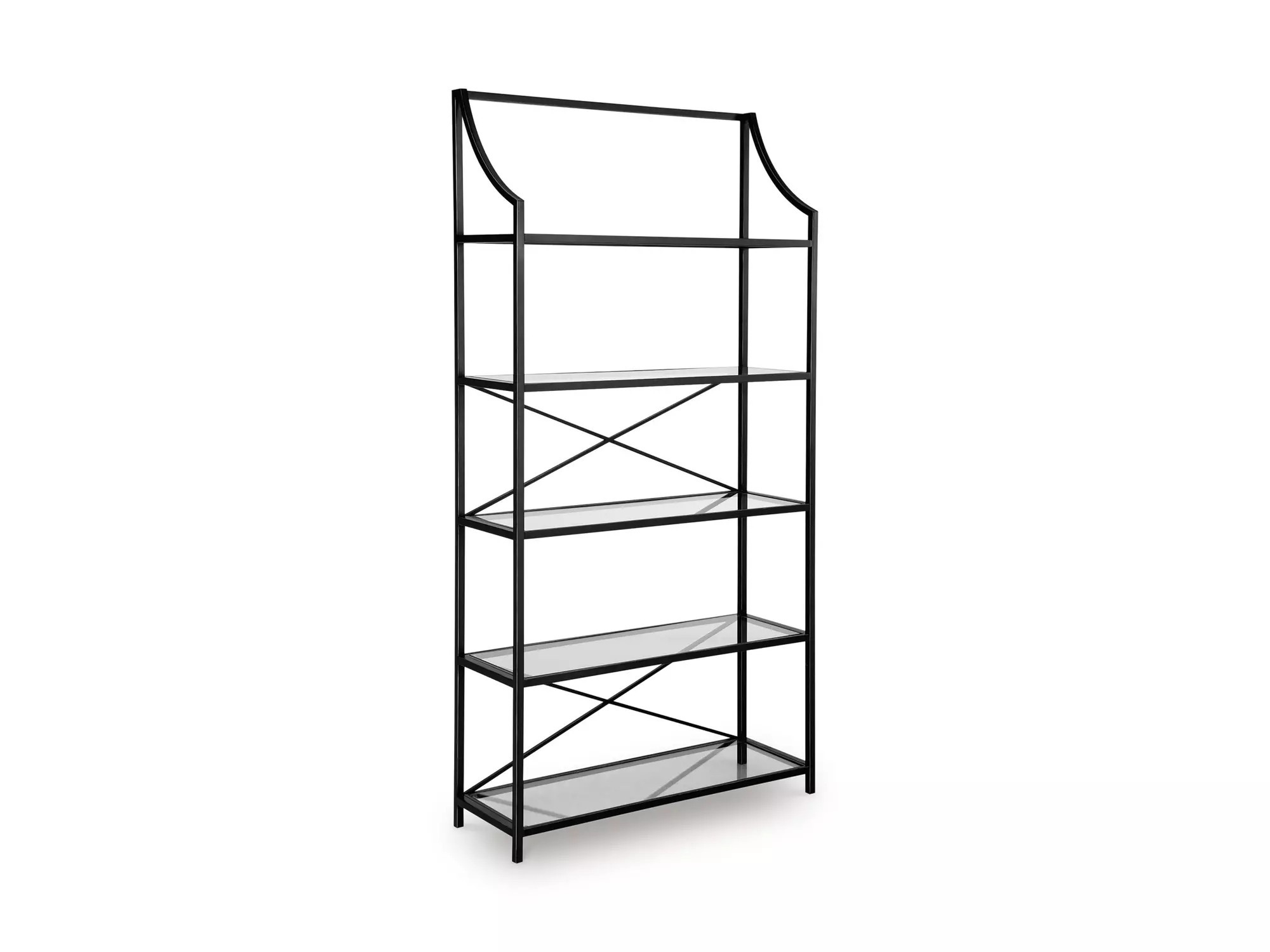 DescriptionThis bookcase proves that traditional designs are simply timeless. Five spacious glass shelves offer plenty of room to display today's meaningful mementos and awesome accessories. With a classic antiqued black finish, it’s just got that ageless appeal.