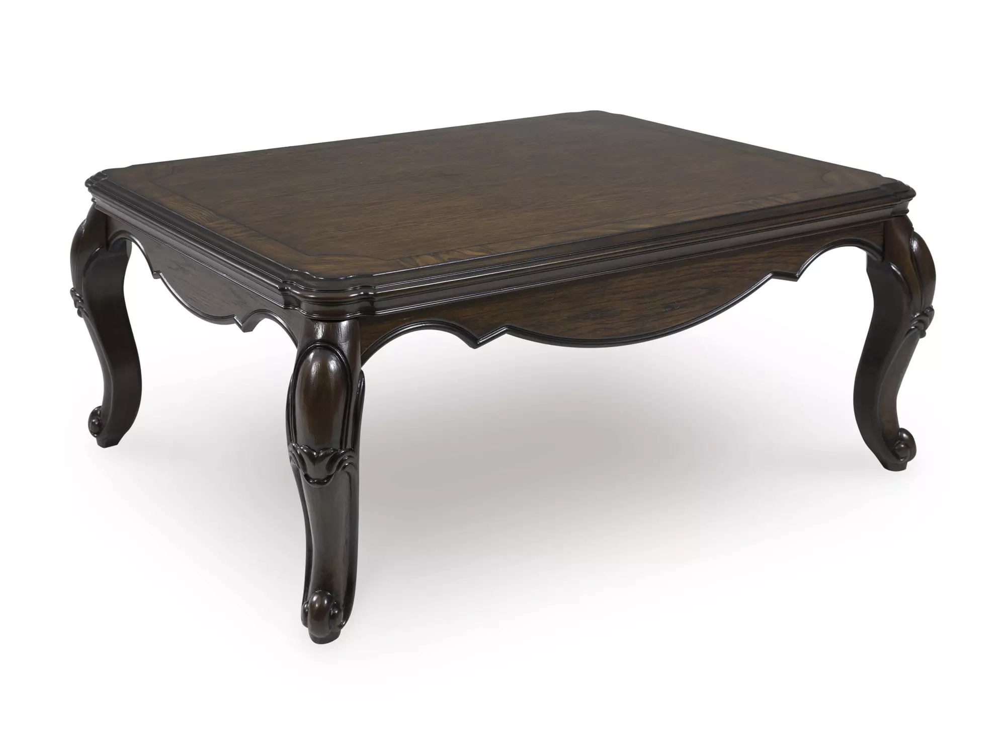DescriptionLavish, luxurious living is within reach when you add this coffee table to your living room. Recalling a classic sense of refinement, its elegant cabriole legs make a beautifully bold statement. Ornate details on the apron add an air of opulence to the regal dark brown finish. The look is timeless. The feel? Right at home.