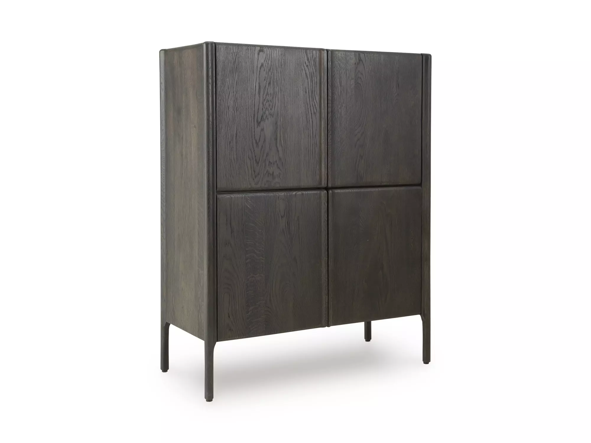 Product DetailsDoors and posts made with solid oak wood | Sides, top, back and interior made with oak veneer and engineered wood substrate | Espresso finish | 4 doors with push magnet function | 6 fixed shelves