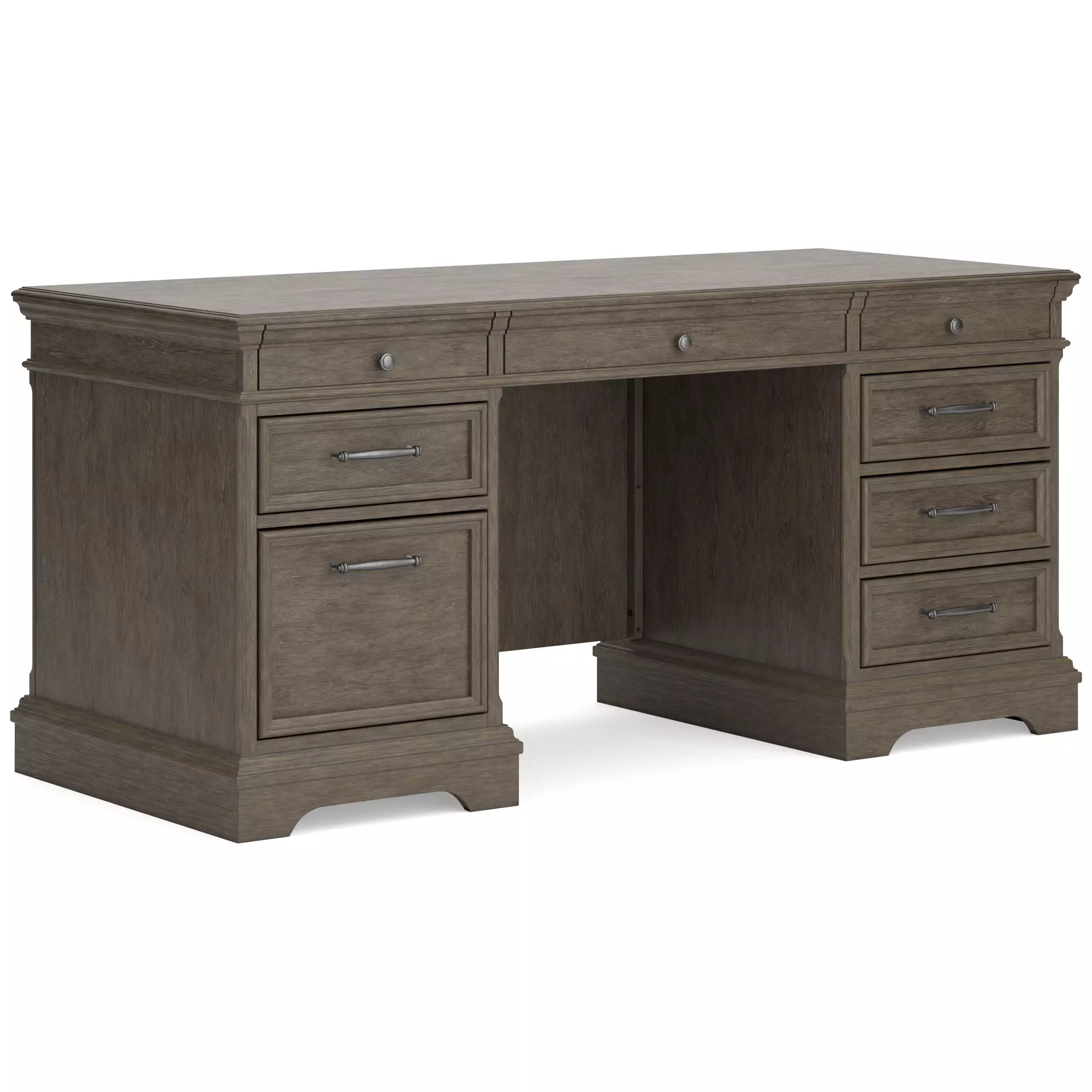 janismore weathered gray home office desk lf pedestal by ashley
