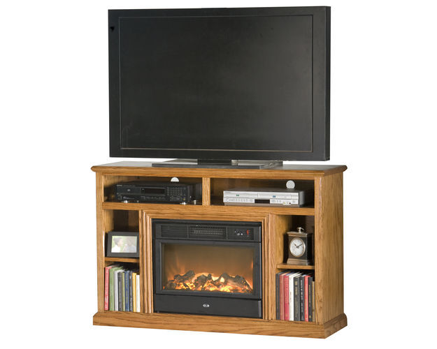 Description: 54 ENTERTAINMENT CONSOLE WITH FIREPLACE, BOOKCASE SIDES, 2 FIXED SHELVES, OPEN STORAGE ABOVE FIREPLACE, PLAIN BASE*GLASS*NG*FINSISH*CC, DK, LT, MD, SO, UN, CR, CM