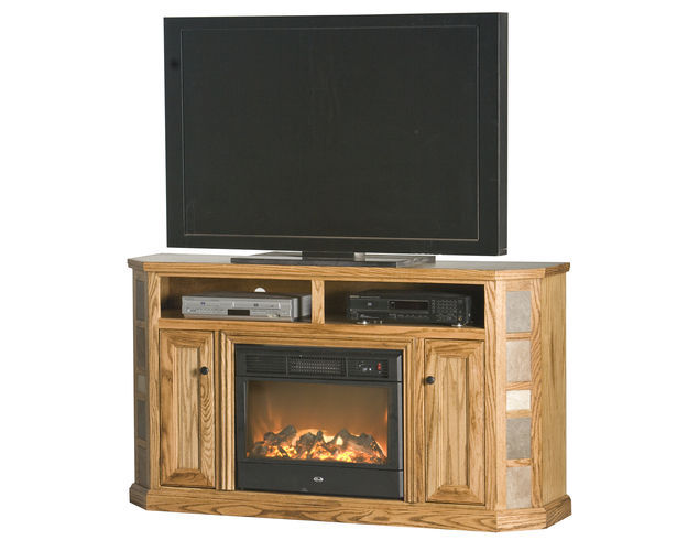Description: 64 ENTERTAINMENT CONSOLE WITH FIREPLACE, OPEN STORAGE ABOVE FIREPLACE, TILED SIDES, 2 BEAD BOARD DOORS, PLAIN BASE*GLASS*NG*FINSISH*CC, DK, LT, MD, SO, UN, CR, CM