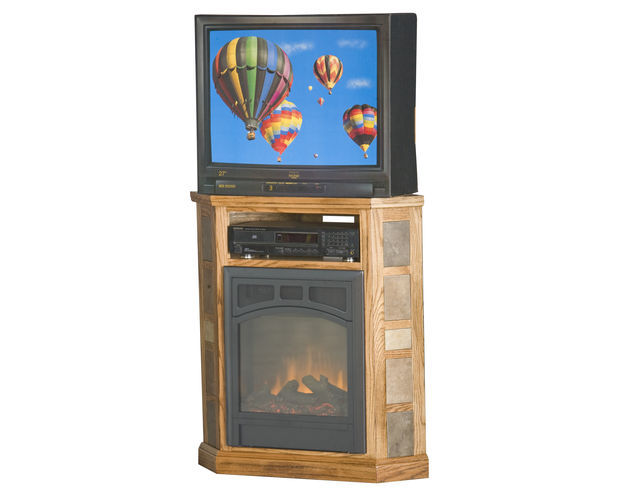Description: 32 CORNER ENTERTAINMENT CONSOLE WITH FIREPLACE, (CORNER OUT 22 3 4), OPEN STORAGE ABOVE FIREPLACE, TILED SIDES, PLAIN BASE*GLASS*NG*FINSISH*CC, DK, LT, MD, SO, UN, CR, CM