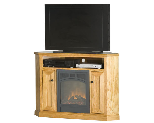 Description: 50 CORNER ENTERTAINMENT CONSOLE WITH FIREPLACE, (CORNER OUT 35 1 2), OPEN STORAGE ABOVE FIREPLACE, 2 BEAD BOARD DOORS, 2 FIXED WOOD SHELVES, PLAIN BASE*GLASS*NG*FINSISH*CC, DK, LT, MD, SO, UN, CR, CM