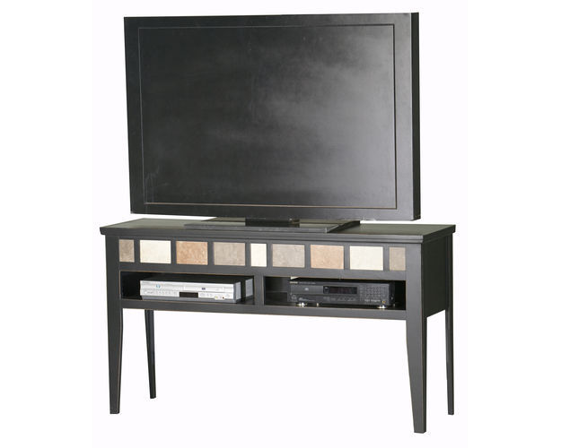 Description: 56 OPEN ENTERTAINMENT CONSOLE, TILE ACCENTS, STRAIGHT LEG BASE*GLASS*NG*FINSISH*BK, CC, CO, CM, CR, EC, GO, HG, IV, SW, UN, WH