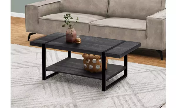 coffee table - black reclaimed wood-look - black metal by monarch specialties (I2860)