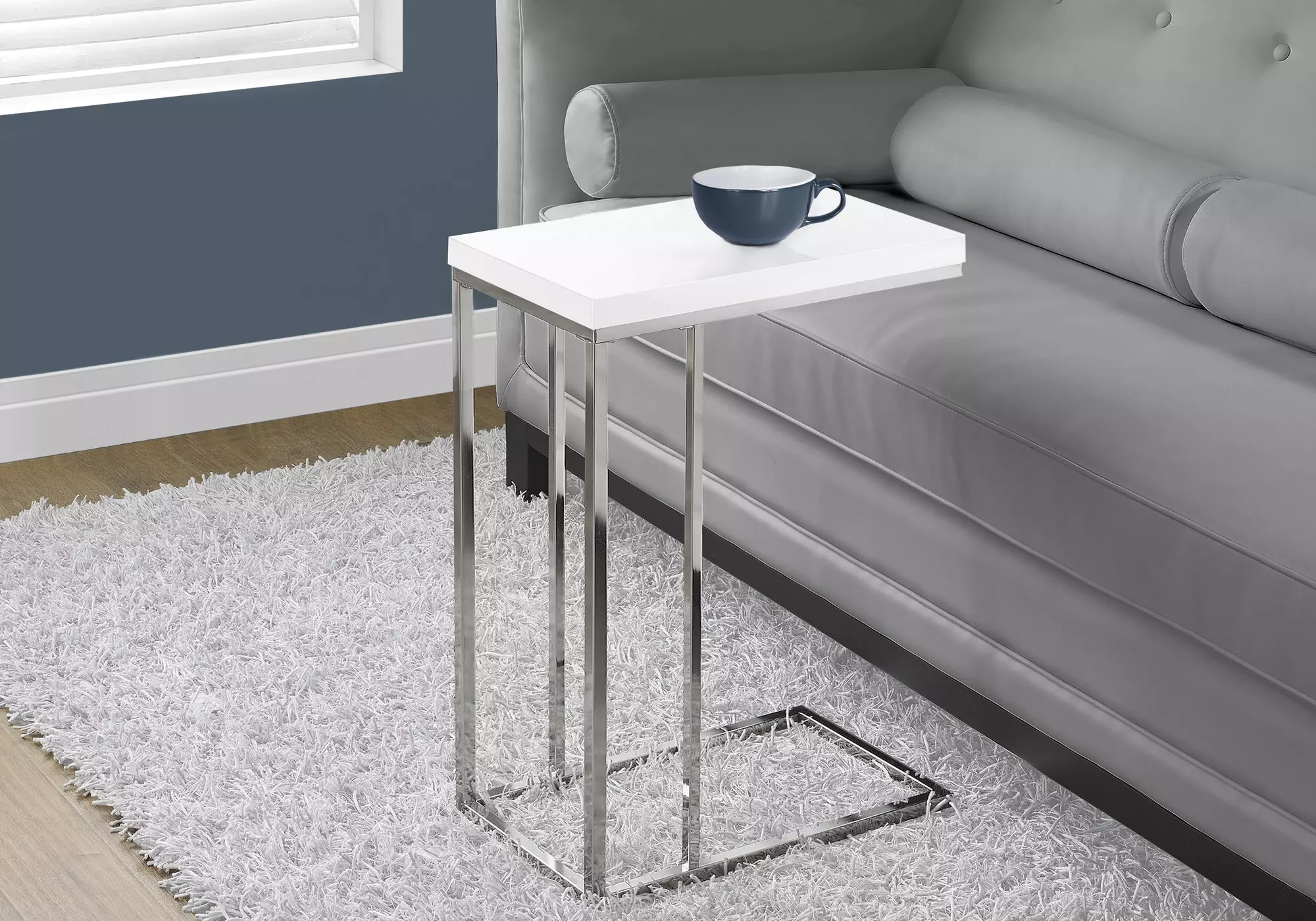 accent table - glossy white with chrome metal by monarch specialties (I3008)