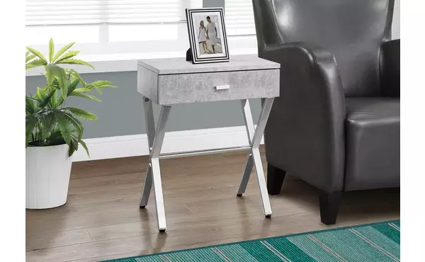 accent table - 24 h - grey cement - chrome metal by monarch specialties (I3264)