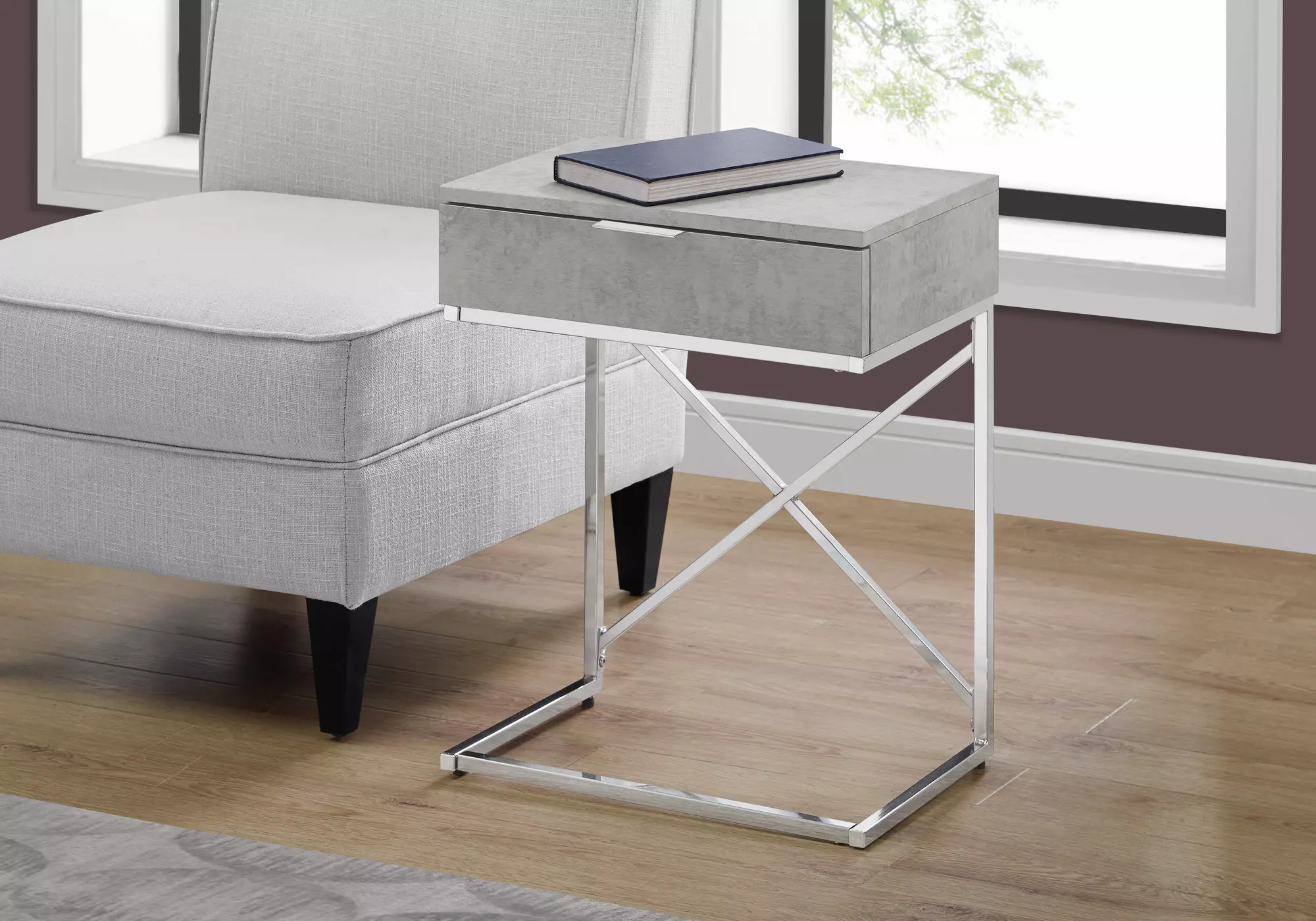 accent table - 24 h - grey cement - chrome metal by monarch specialties (I3471)