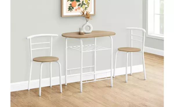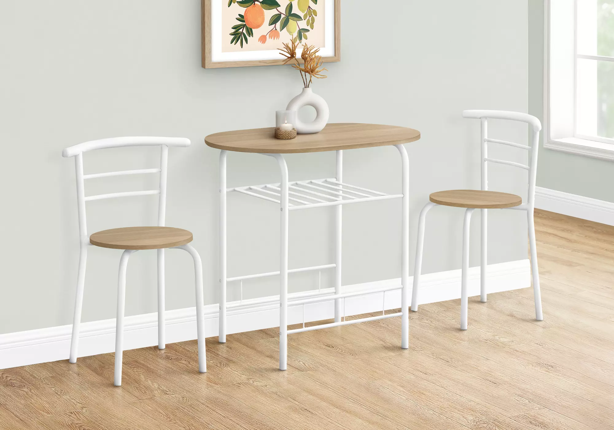 dining set - 3pcs set - natural top - white metal by monarch specialties (I1209)