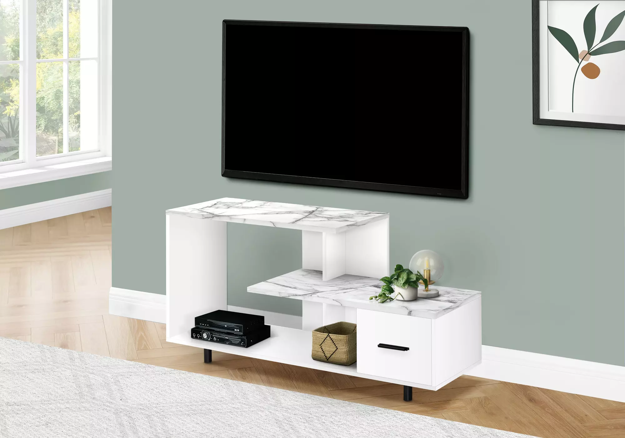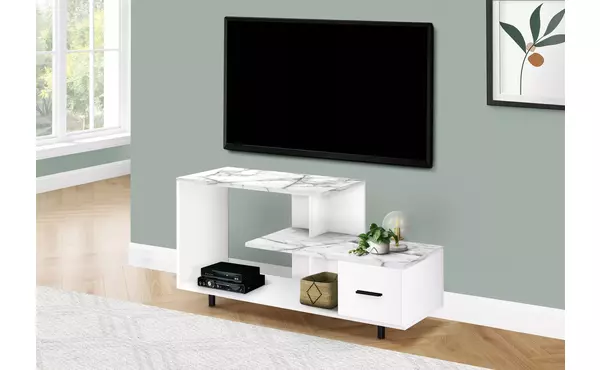 tv stand - 48 l - white - white marble top - 1 drawer by monarch specialties (I2609)