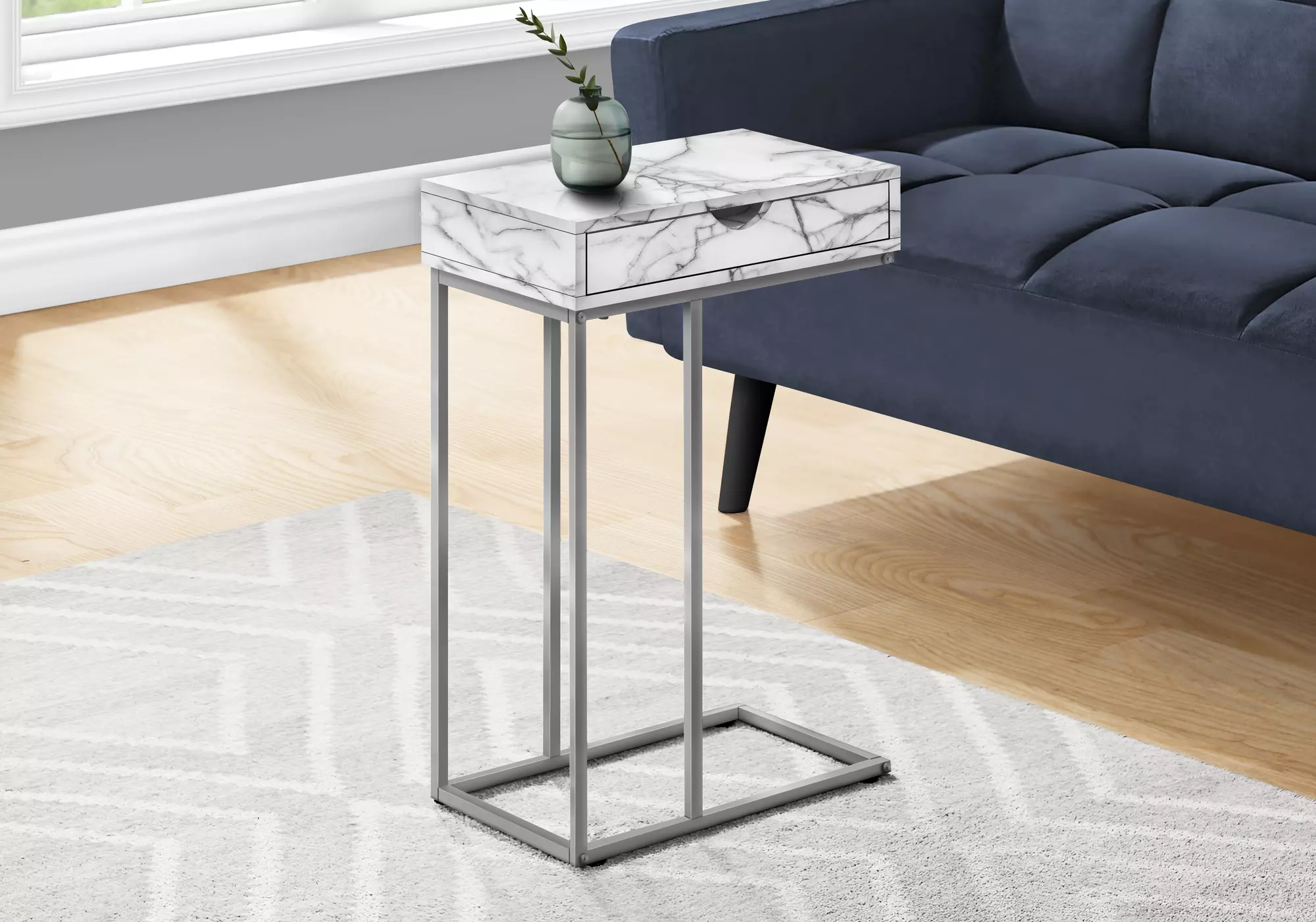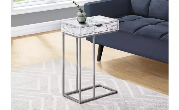accent table - 25 h - white marble - silver metal by monarch specialties (I3772)