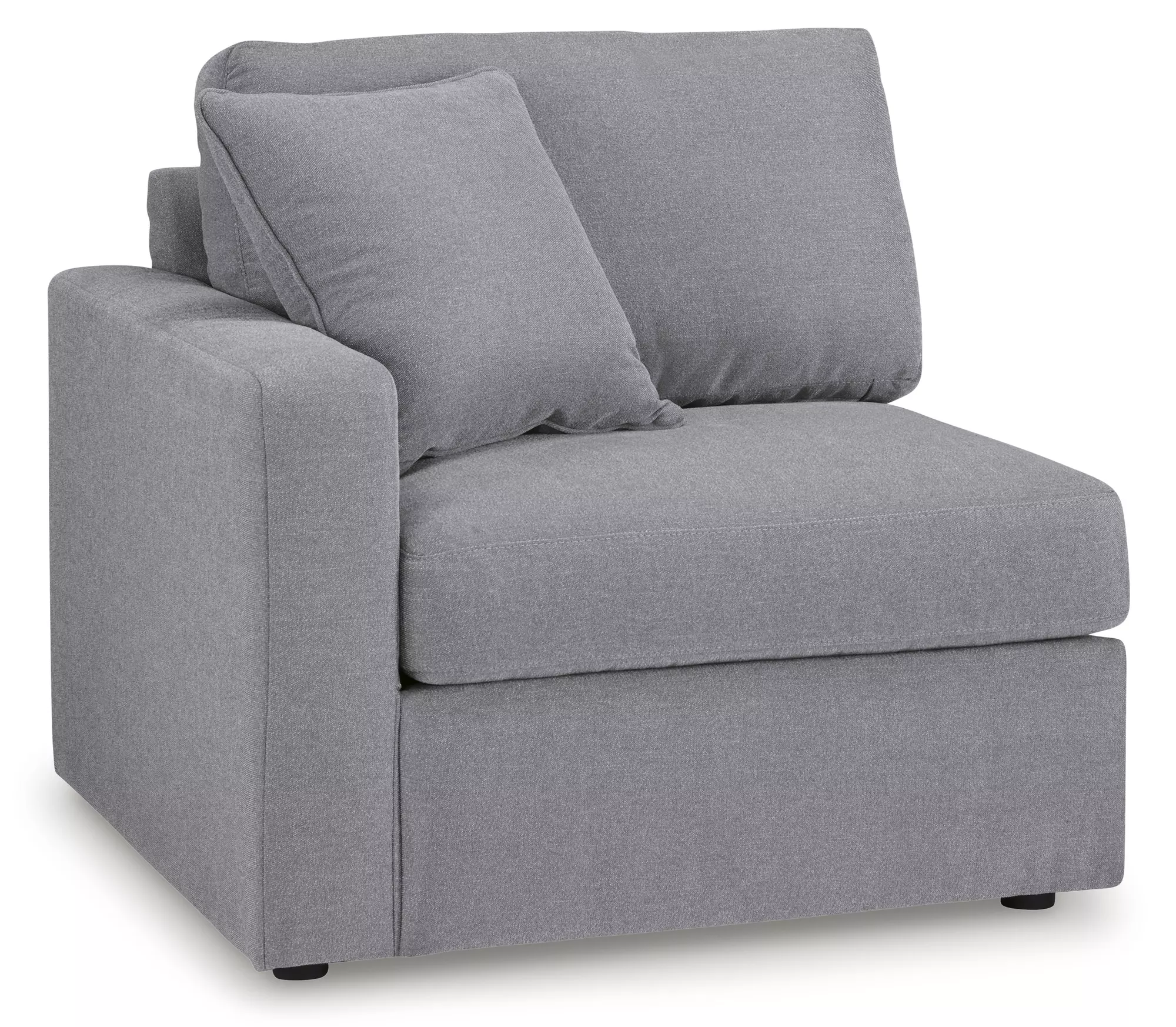 This left-arm facing corner chair is made with Next-Gen Nuvella™ (polyester) fade-resistant, washable fabric. Fully finished on all sides, it pairs with other items in the series to make a modular sectional.