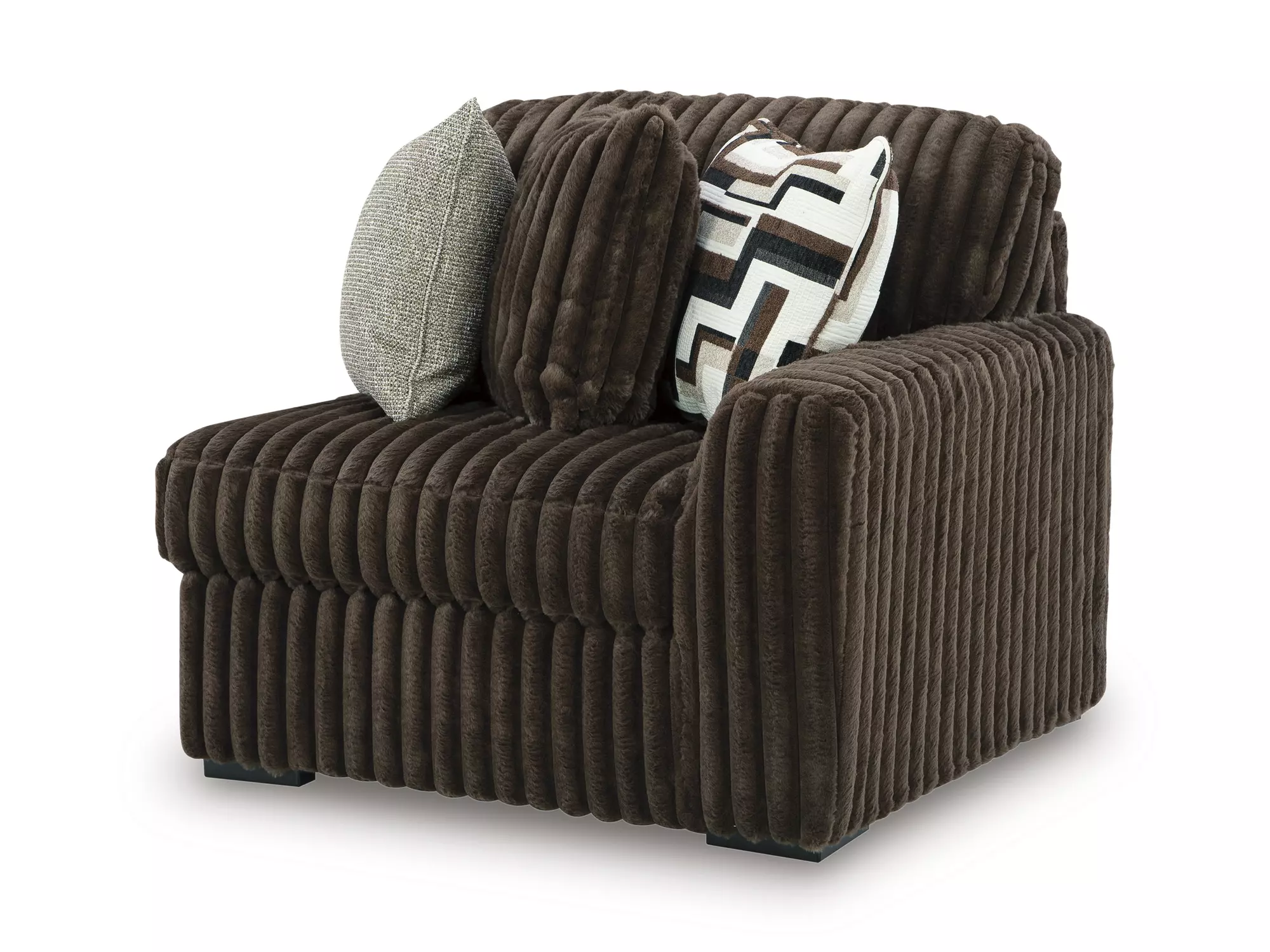 DescriptionThis right-arm facing corner chair is made with polyester upholstery. Pairs with other items in the series to make a sectional.