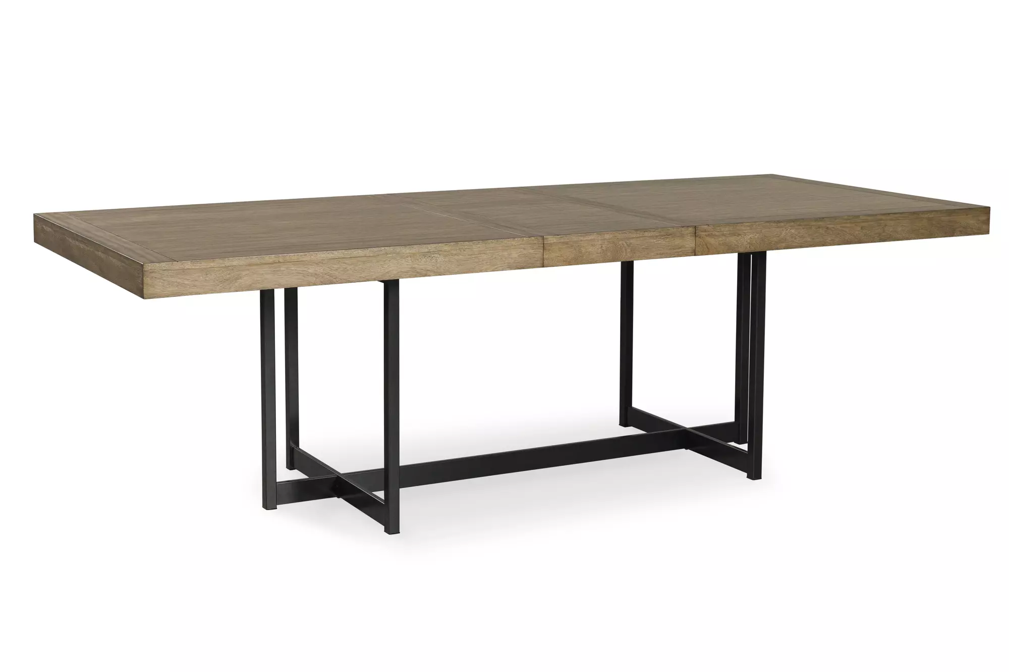 Made with hardwood solids, mango wood veneer, MDF substrates and metal | Light brown wood finish | Gunmetal gray finish on tubular steel base | Self-storing removable leaf | Seats up to 8 | Assembly required