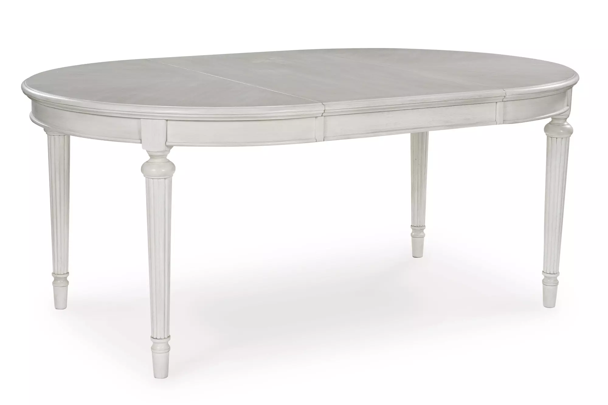 DescriptionTransform your home into a haven of timeless elegance with this dining extension table. Traditionally styled, its classic antiqued white finish is paired with reeded legs and a tabletop with a butterfly-matched veneer pattern. With the removable center leaf, it effortlessly transitions from round to oval to seat six comfortably. Whether you're settling in at mealtime or working from home, this table serves your sense of relaxed refinement beautifully.