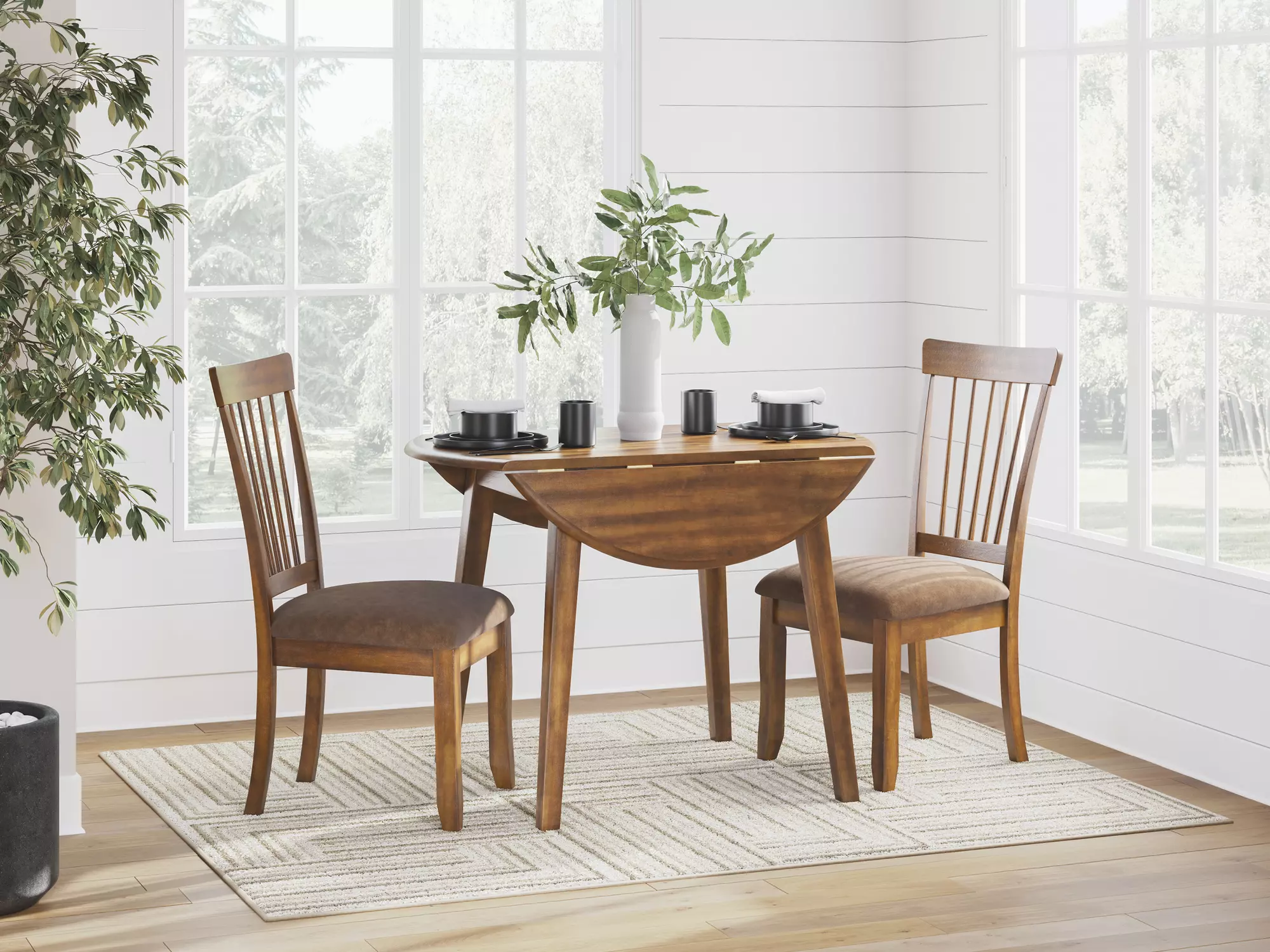 Product DetailsMade of veneers, wood and engineered wood | Hinged extension leaves | Seats up to 4 | Assembly required