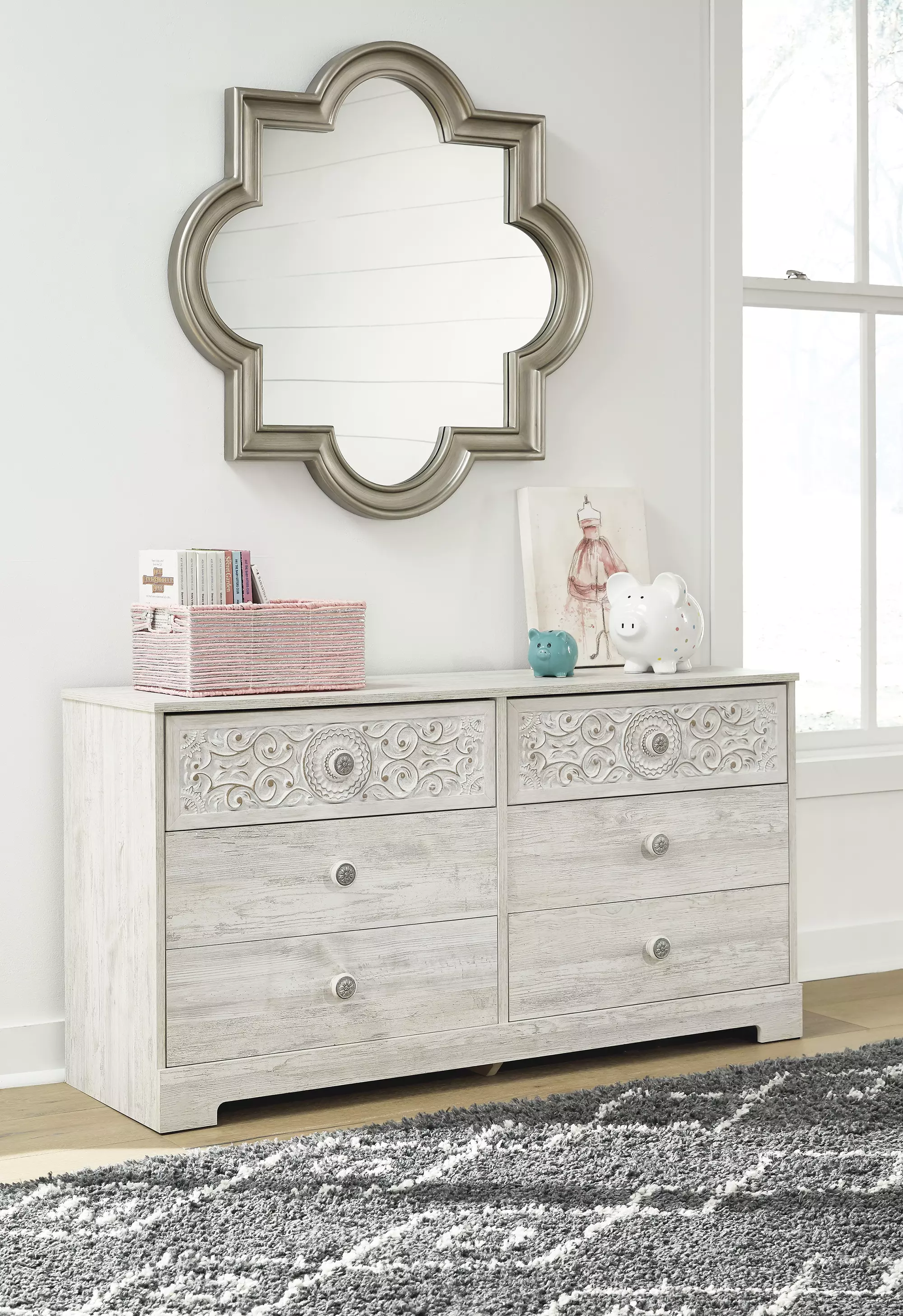 paxberry whitewash six drawer dresser by ashley (EB1811-131)