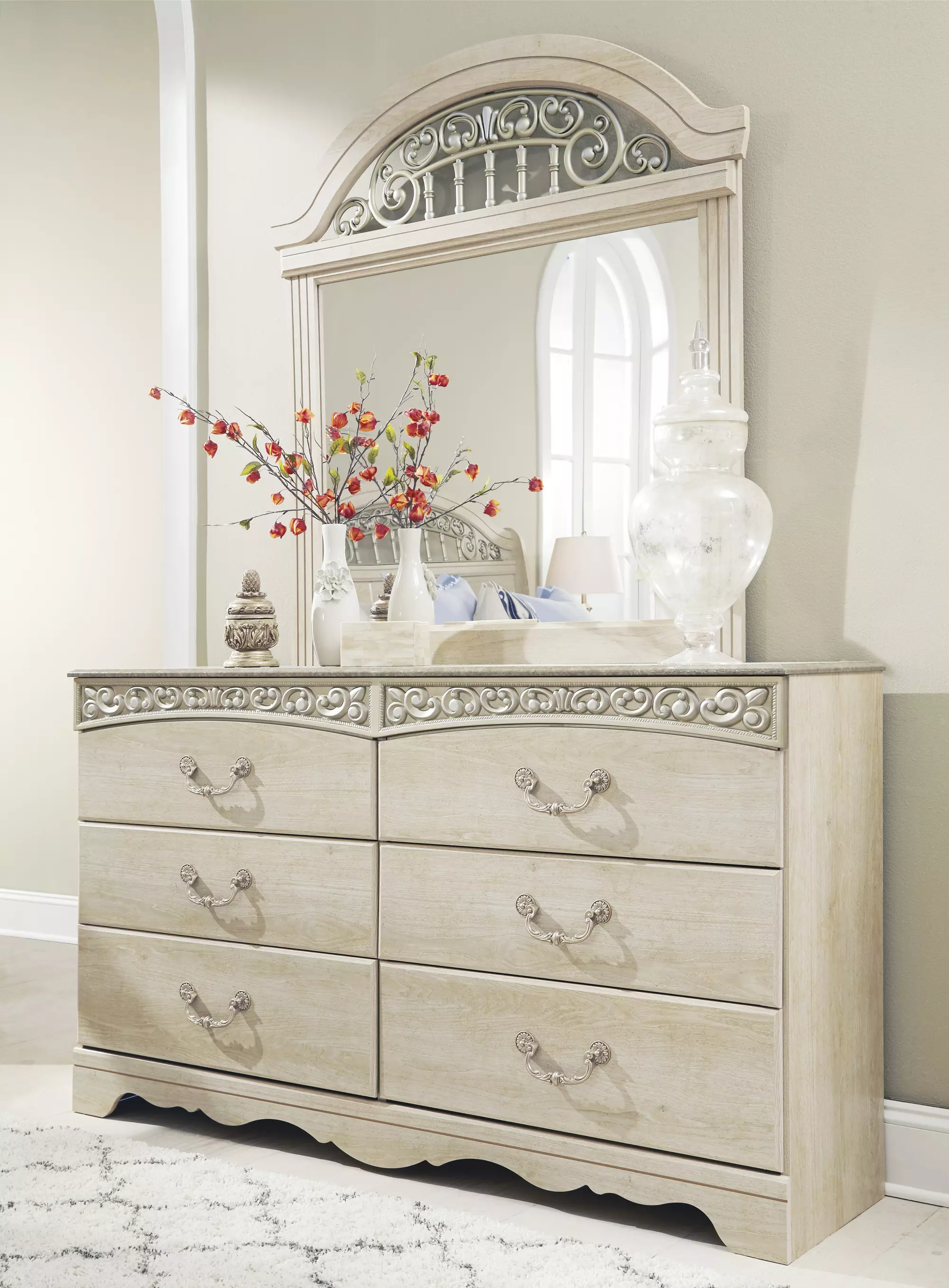 catalina antique white bedroom mirror by ashley (B196-36)