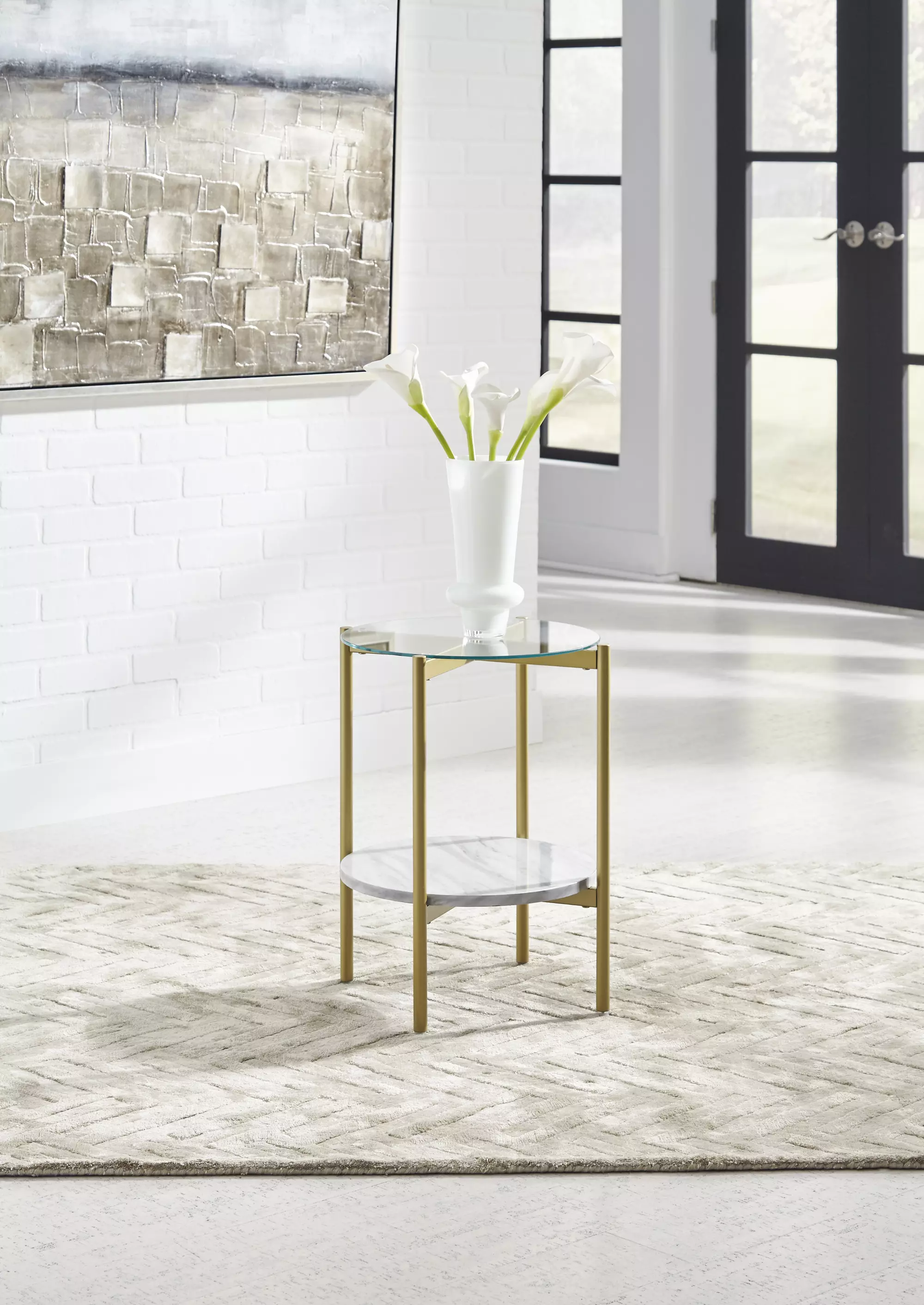 wynora white/gold round end table by ashley