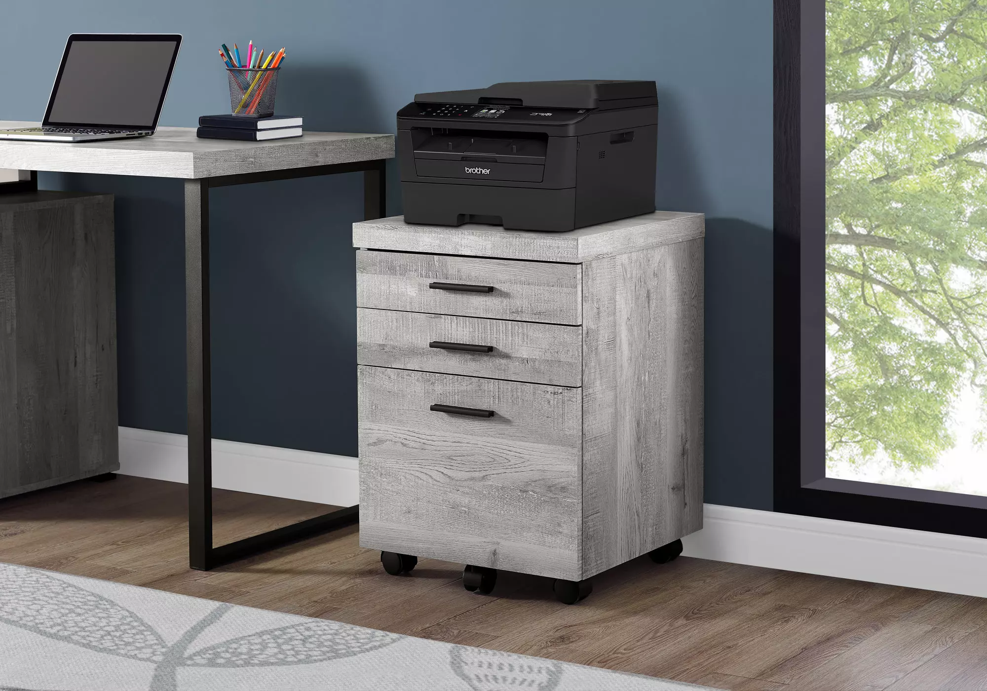 filing cabinet - 3 drawer - grey reclaimed wood - castors by monarch specialties