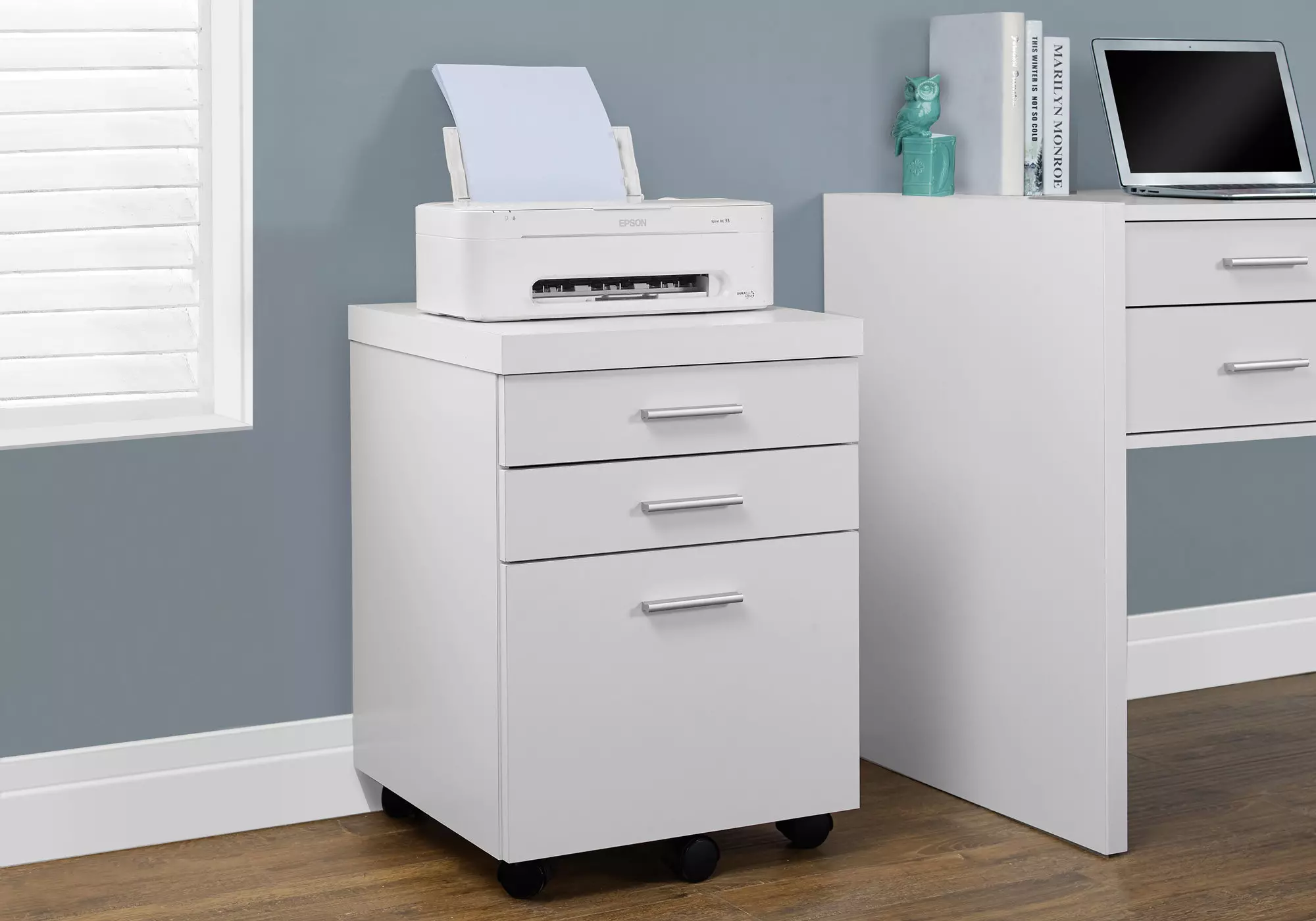 filing cabinet - 3 drawer - white on castors by monarch specialties