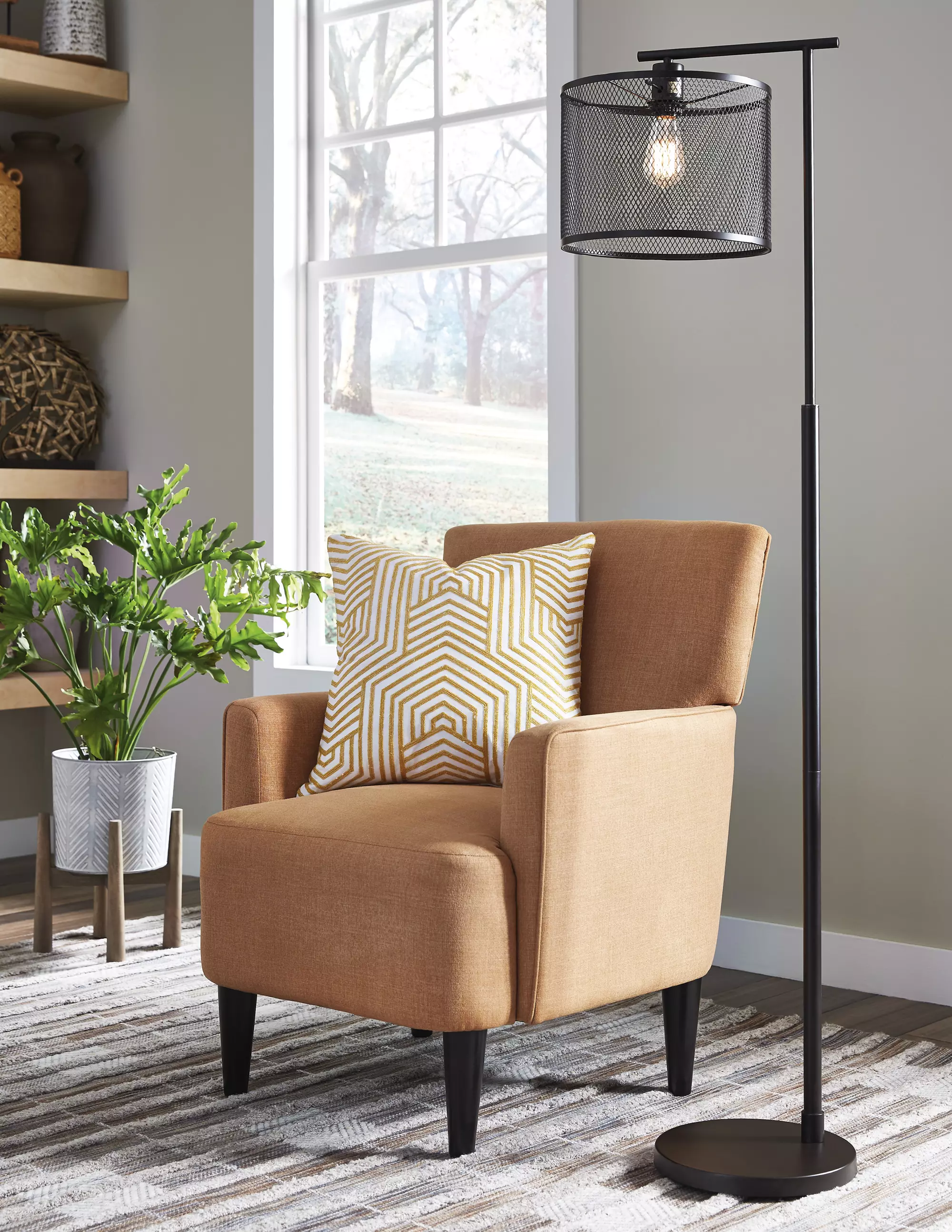 nolden bronze finish metal floor lamp (1/cn) by ashley