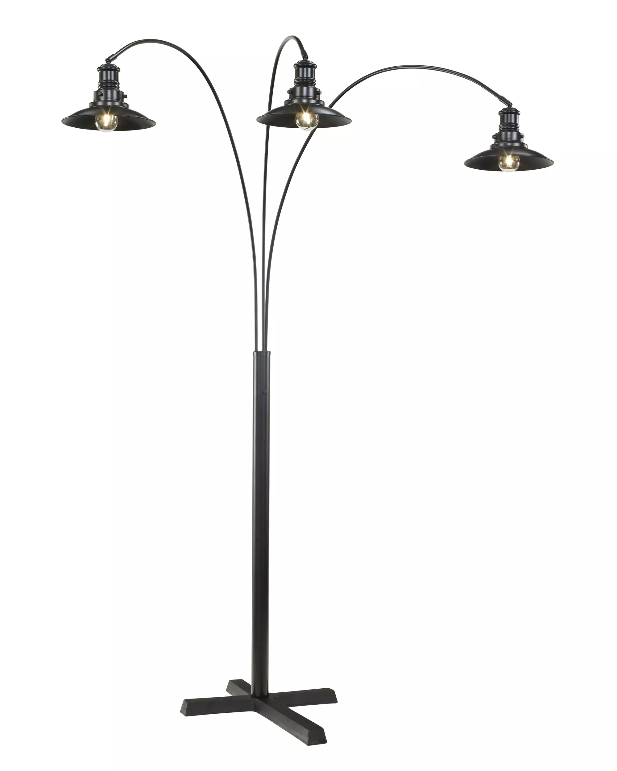 DescriptionWith arm and neck adjustability and the bright idea for a dimmer switch on the post, this striking three-arm metal arc floor lamp lets there be light—exactly as you see fit.