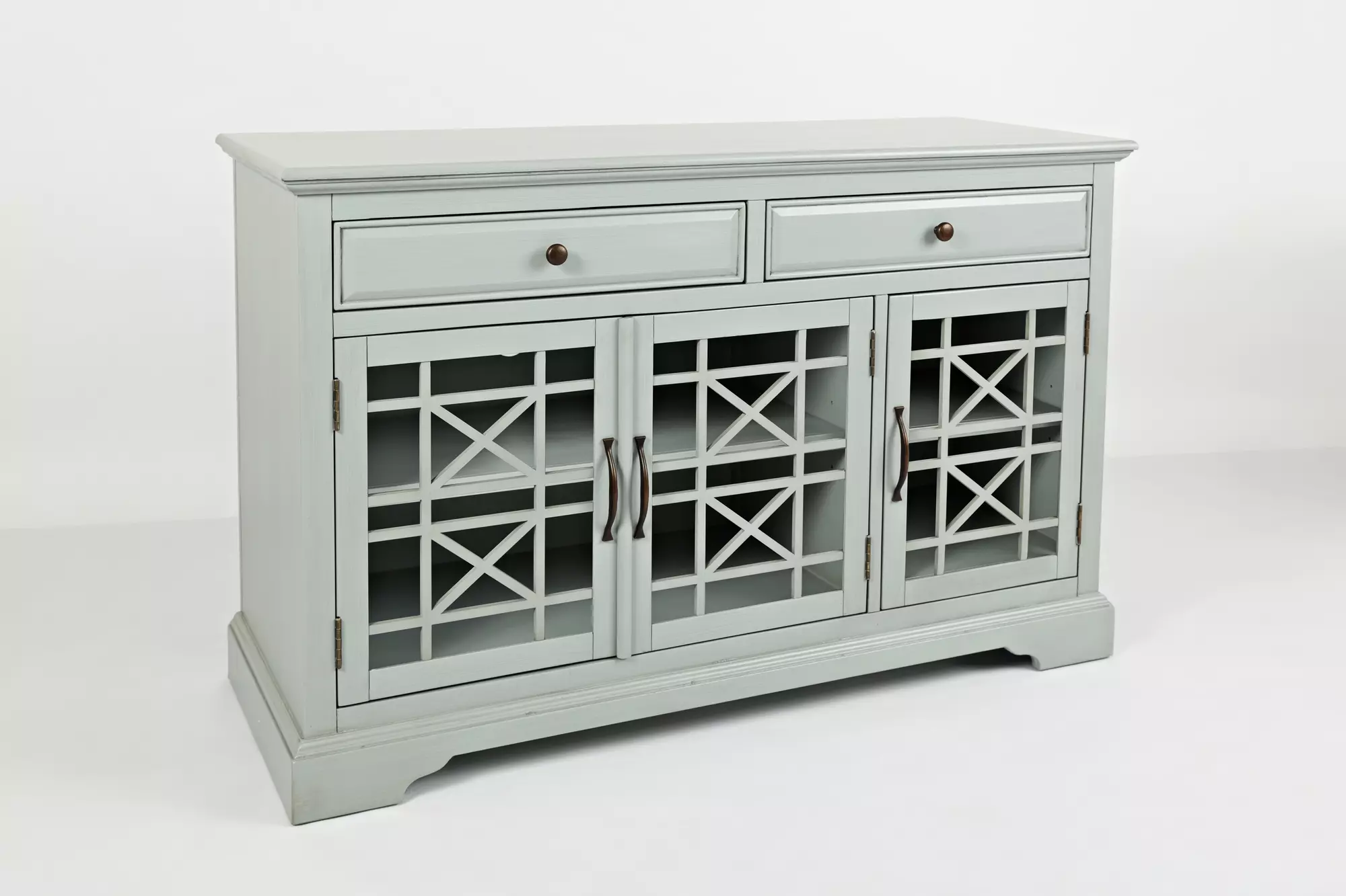 craftsman 50" media unit w/3 glass doors, 2 drawers craftsman collection by jofran (375-50)