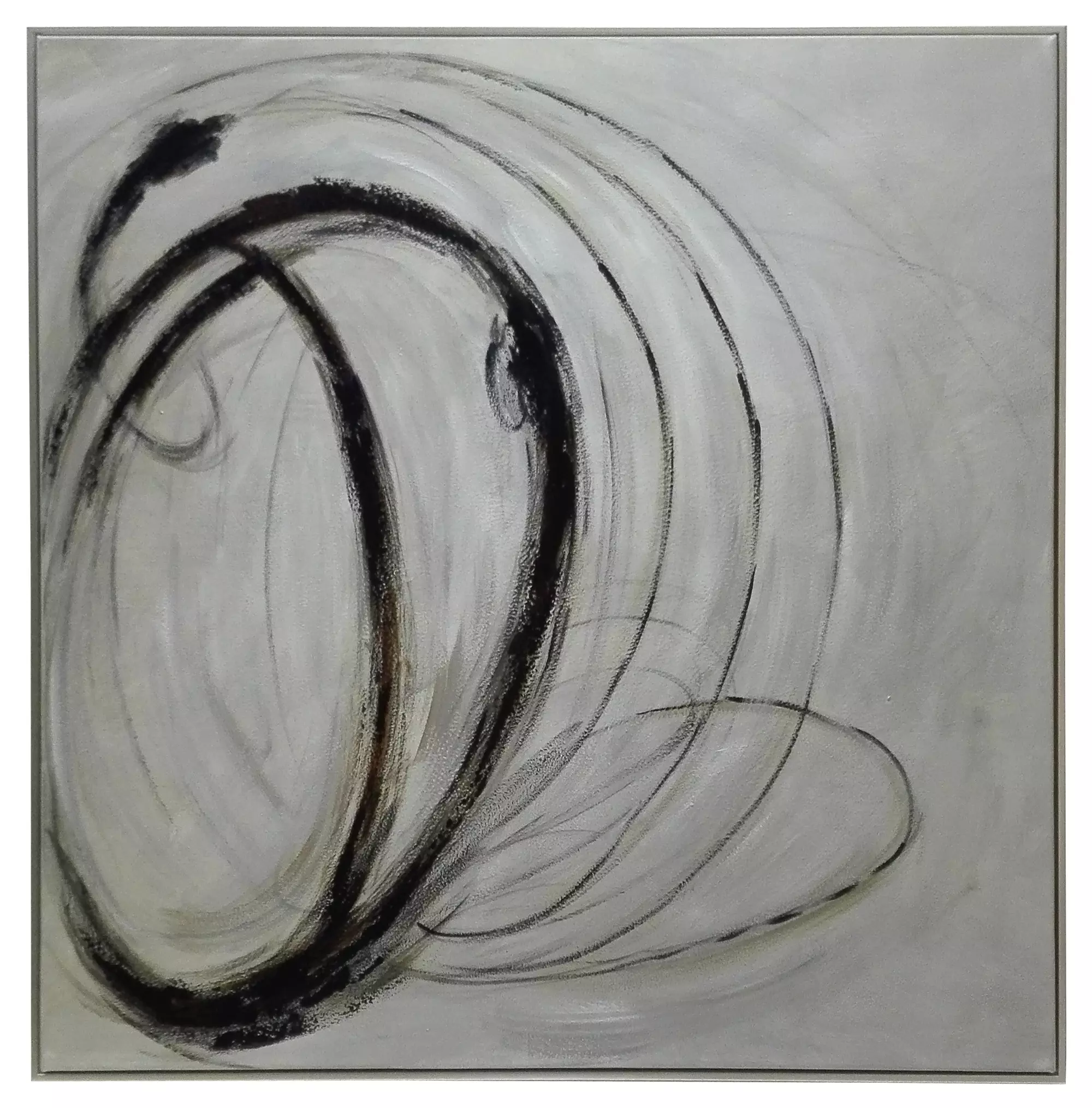 art painting, blk & grey, silver frame, l40