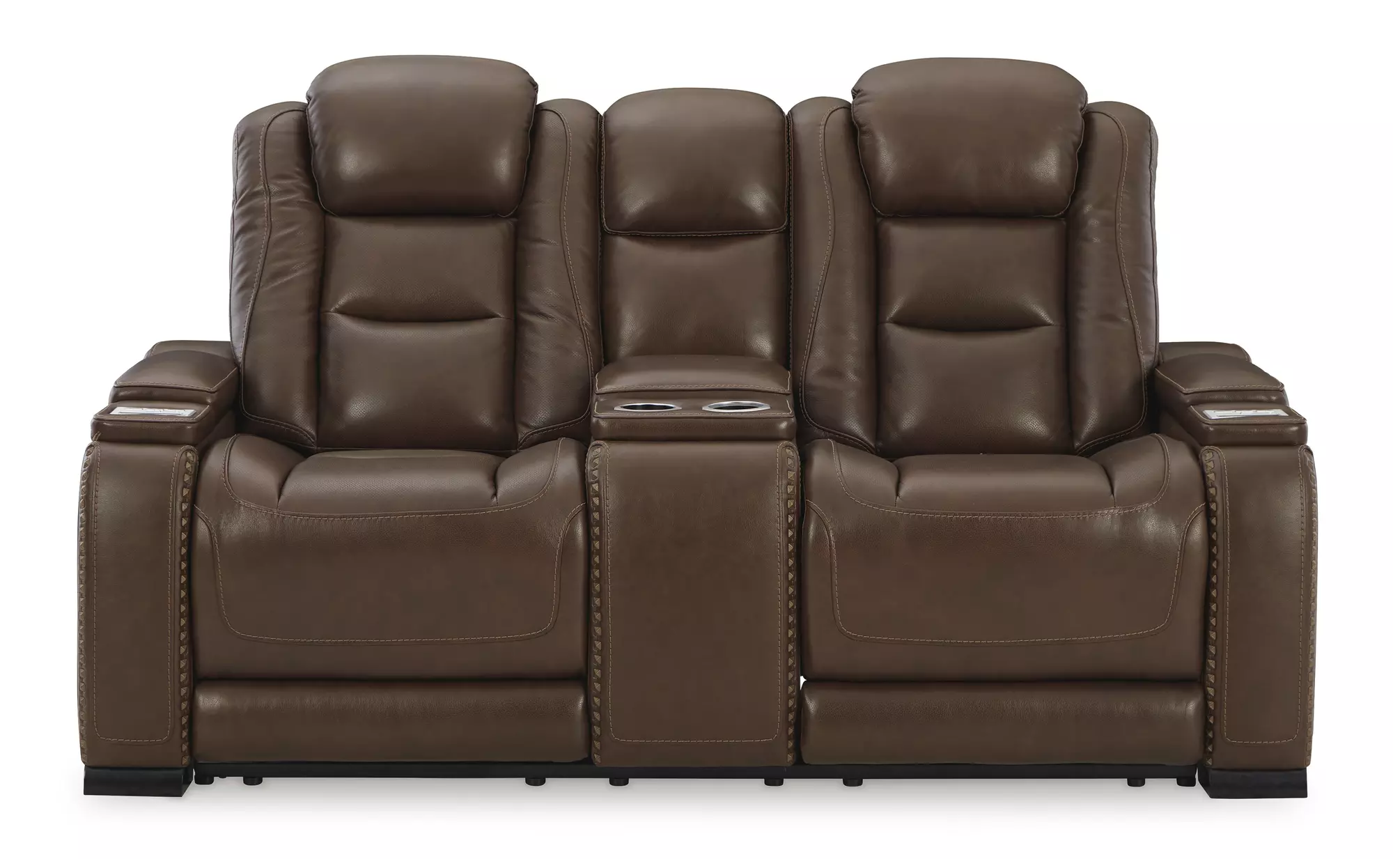 the man-den mahogany pwr rec loveseat/con/adj hdrst by ashley