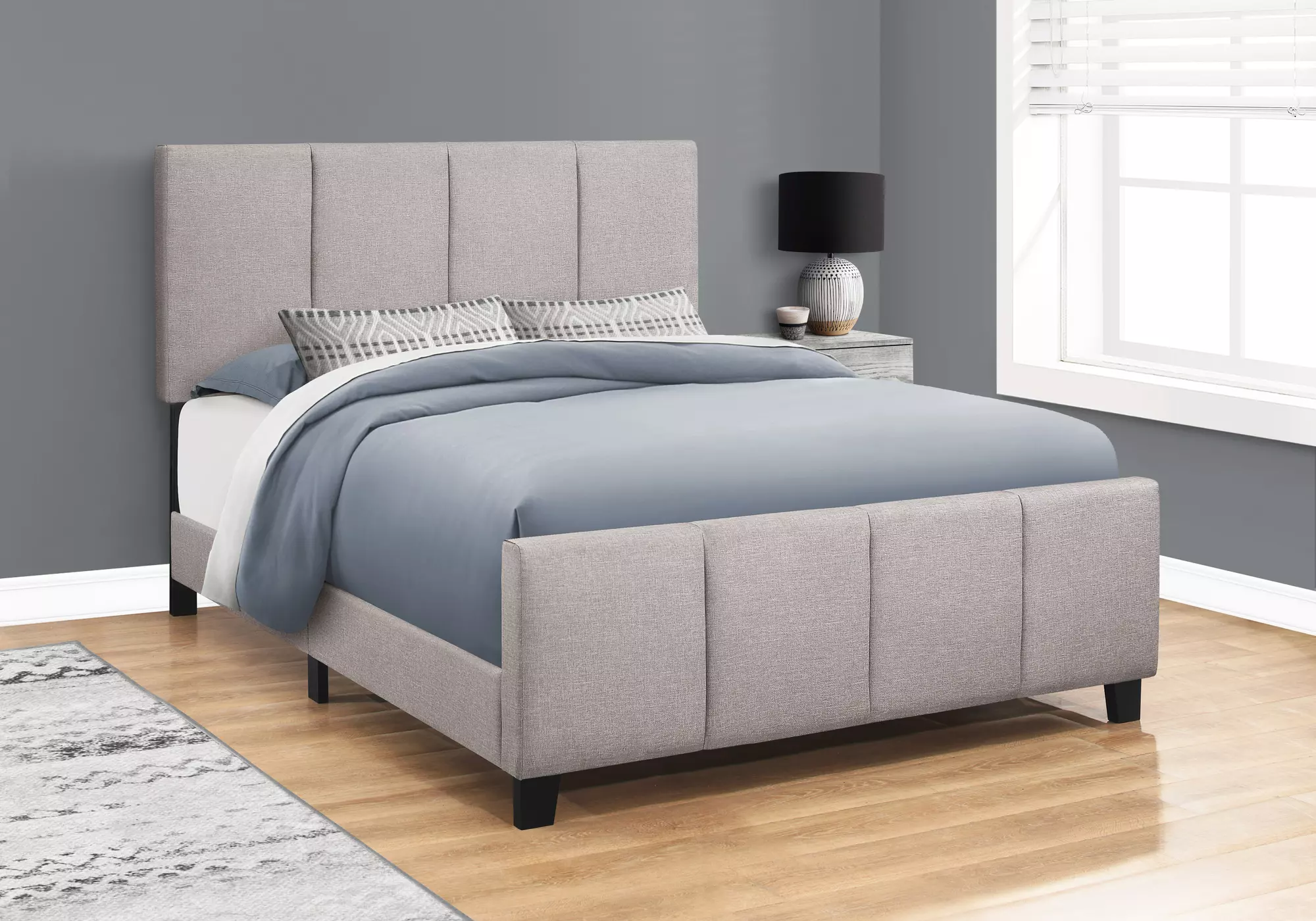 bed - queen size - grey linen by monarch specialties