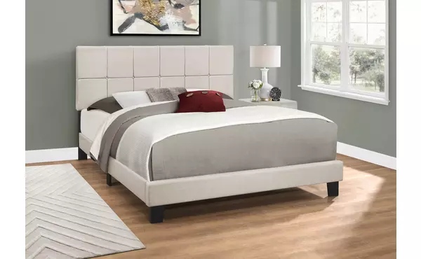 bed - queen size - beige linen by monarch specialties (I5605Q)