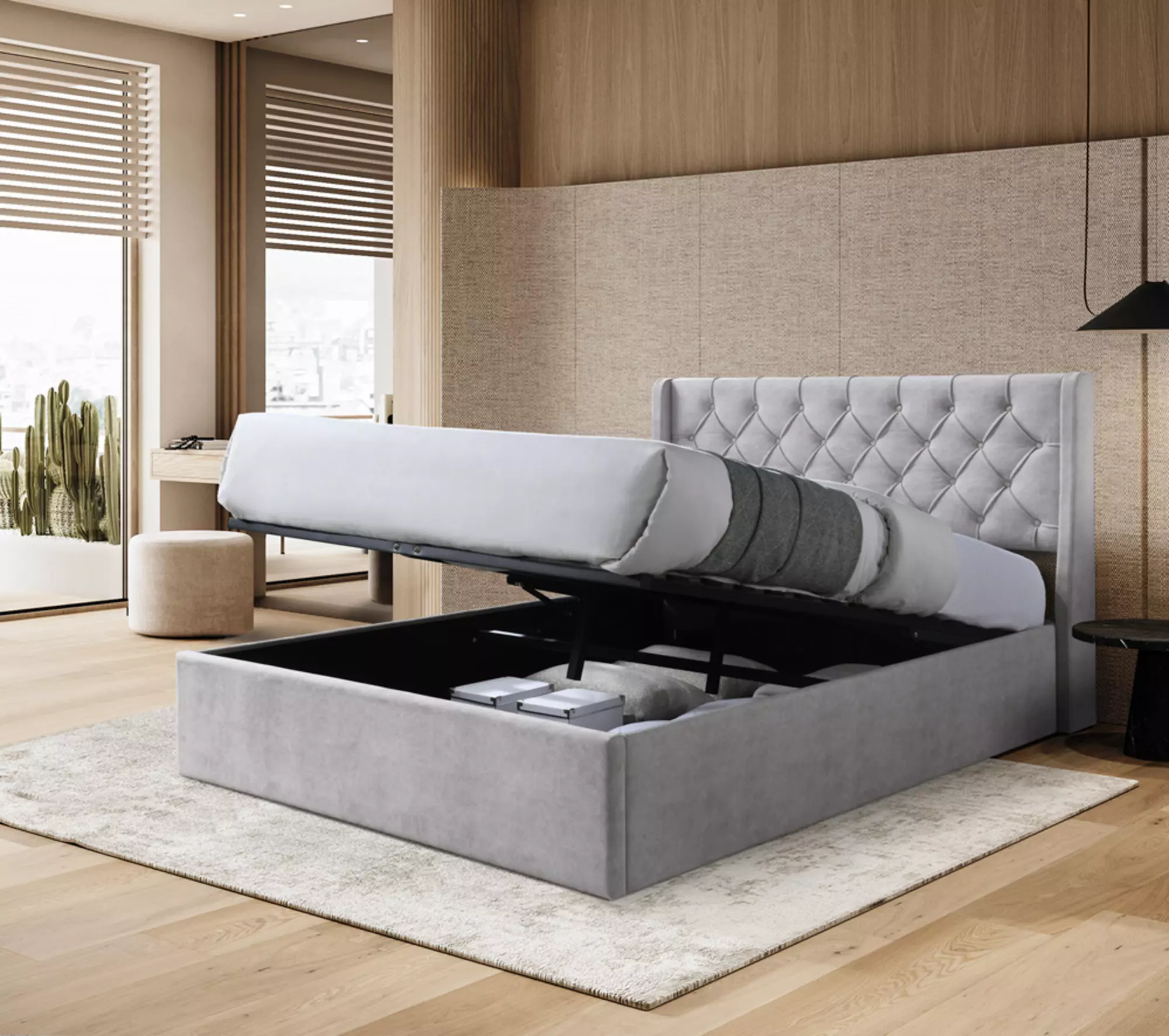 queen hydraulic lift bed light gray by exact (9472LGREY)